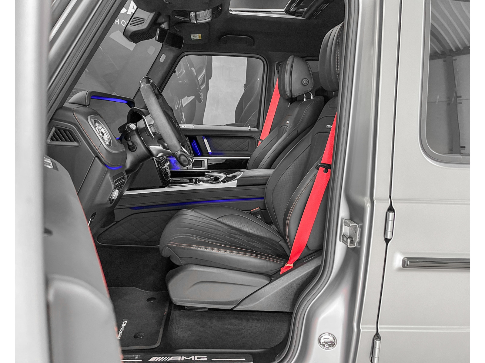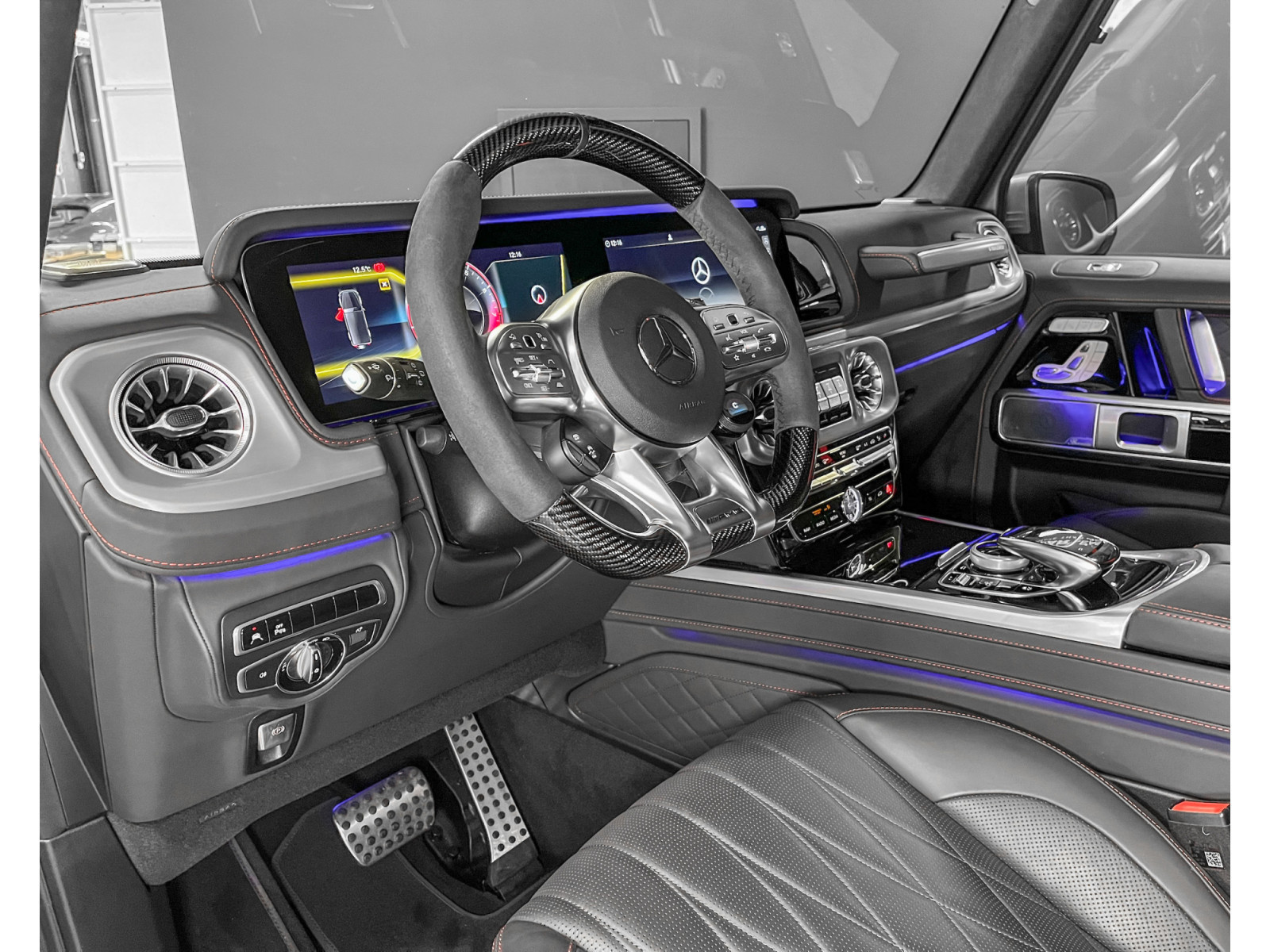 Éclairage d'ambiance (portée étendue), contrôle de confort énergisant, système de caméra 360 degrés, peinture : designo magno, volant (AMG Performance, Nappa / Dinamica), jantes LM 10x22 (AMG, rayons croisés, noir mat), housse de siège/revêtement : Cuir nappa MANUFAKTUR avec coutures contrastées, intérieur supérieur