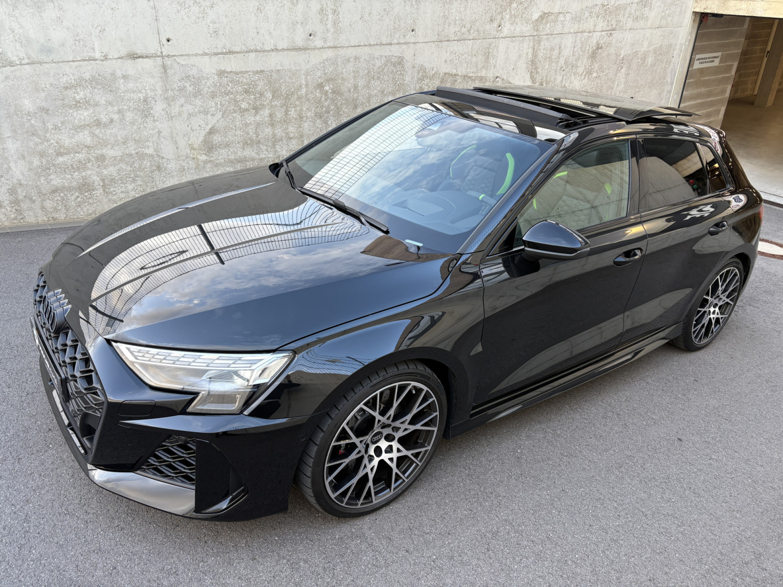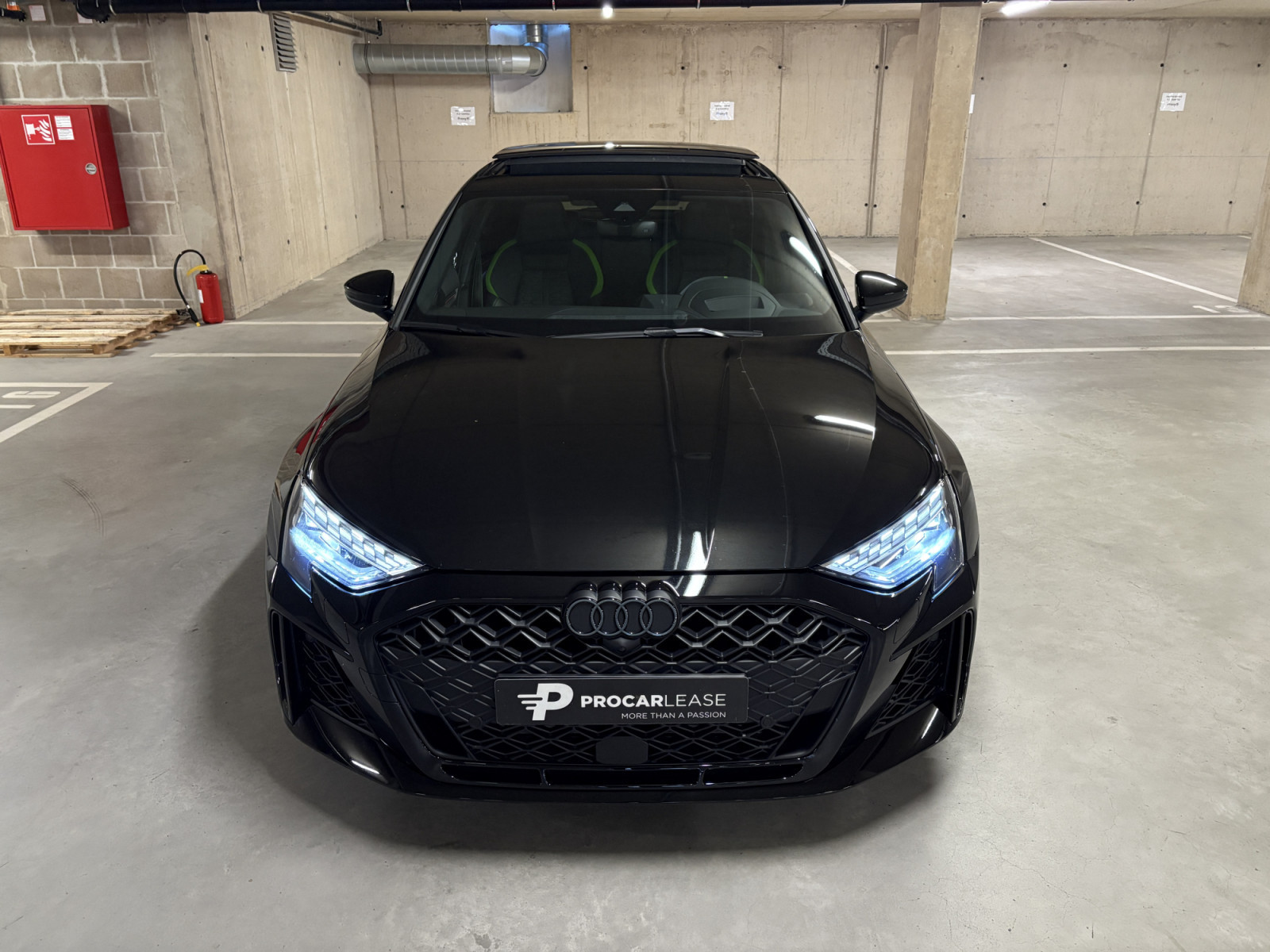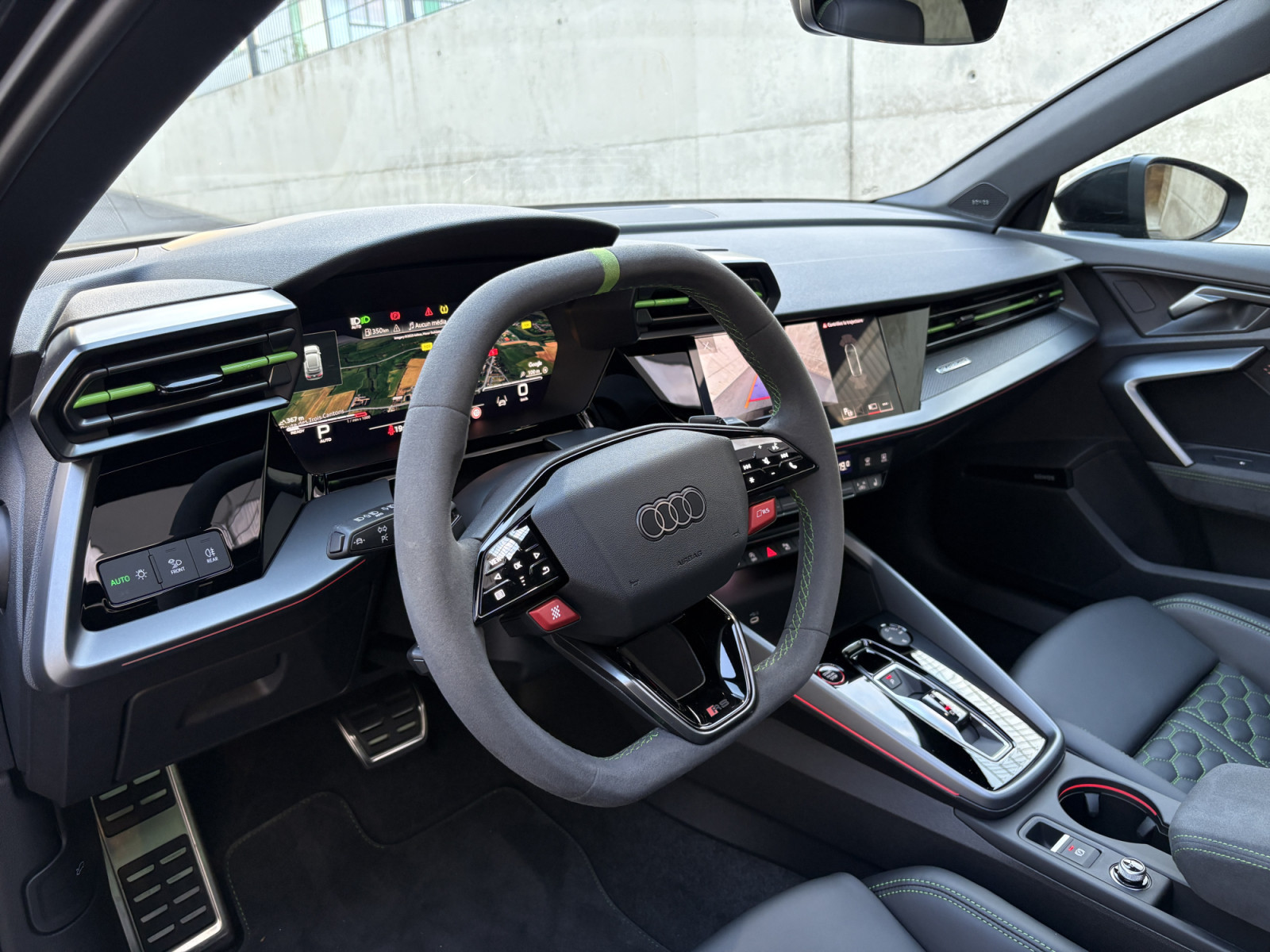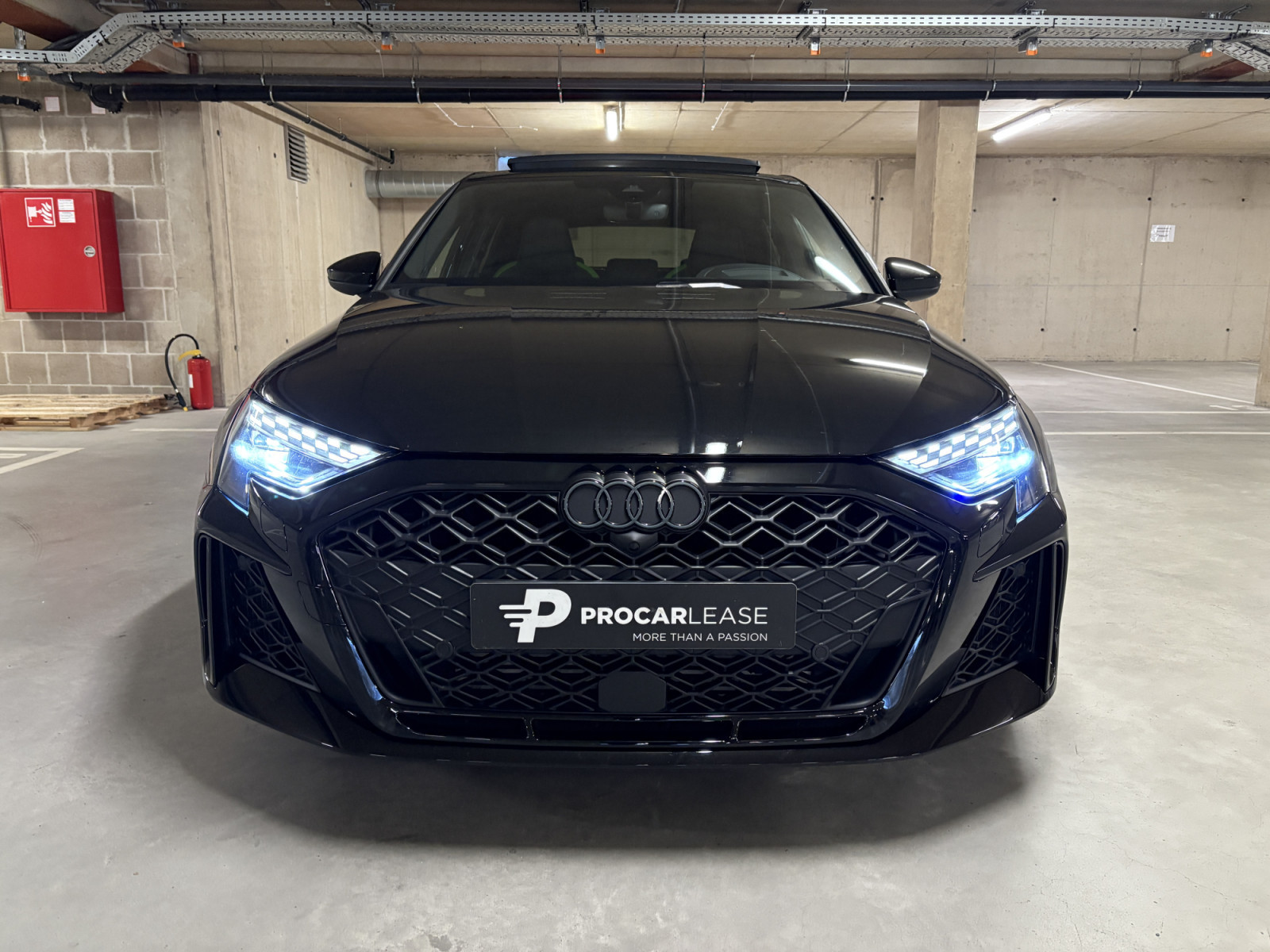 Pack rangement et coffre, Feu stop adaptatif, Airbag passager désactivable, Airbag conducteur/passager, Contrôle antipatinage (ASR) avec EDS, Audi connect (système d'appel d'urgence et d'assistance), Audi connect (télécommande), Audi Drive Select, Clignotants LED intégrés aux rétroviseurs extérieurs, Étriers de frein peints en noir, Ciel de pavillon en tissu noir, Becquet de toit, Seuils de porte avec inserts et inscriptions en aluminium, éclairés, Feux d'entrée à LED avec fonction de projection, Système d'assistance à la conduite : Détection de distraction et de fatigue, Système d'assistance à la conduite : Assistance à l'évitement, Système d'assistance à la conduite : Assistance au freinage (Audi pre sense front), Système d'assistance à la conduite : Assistance au freinage (collision consécutive), Système d'assistance à la conduite : Assistance d'urgence avec appel d'urgence automatique, Système d'assistance à la conduite : Assistance au stationnement, Système d'assistance à la conduite : Avertisseur de franchissement de ligne avec assistance d'urgence, Système d'assistance à la conduite : Reconnaissance des panneaux de signalisation, Système d'information du conducteur (FIS) avec écran couleur, Cache-bagages / store enrouleur, limiteur de vitesse, Feux arrière à LED avec clignotants dynamiques, Intérieur : Inserts décoratifs Carbon Atlas, Intérieur : Aspect Vanadium, Fixations Isofix pour siège enfant, carrosserie : 5 portes, verrouillage électrique enfant. combiné d'instruments numérique (virtual cockpit plus) au design RS, pack éclairage d'ambiance/contour (pro), système d'airbags de tête (sideguard), appuie-têtes arrière (3 voies), élargisseurs d'ailes, volant (sport/cuir - 3 branches, méplat en haut/en bas) avec multifonction et fonction de changement de vitesse, mise à jour du modèle, moteur 2,5 litres - 294 kW 20V TFSI, pack non-fumeur, pack style noir, pack style noir plus, frein de stationnement électromécanique, pédales en acier inoxydable, direction progressive, réception radio numérique (DAB), kit de réparation de pneus, pack extérieur RS noir mat, pare-chocs avant RS design sport, sièges sport RS à l'avant, dossier de banquette arrière divisé/rabattable (40:20:40), faibles émissions selon la norme antipollution Euro 6e, levier de vitesses/sélecteur de vitesse en Alcantara/microfibre, airbag latéral à l'avant, airbag latéral au centre avant (airbag d'interaction), suspension sport spécifique S/RS, système start/stop, prise de courant (connexion 12 V) à l'arrière (console centrale), pare-chocs Sport Design (S-line), pare-chocs Sport Design avec insert diffuseur arrière, inserts de garniture de porte en Alcantara, interface Bluetooth universelle, interface USB pour les passagers arrière