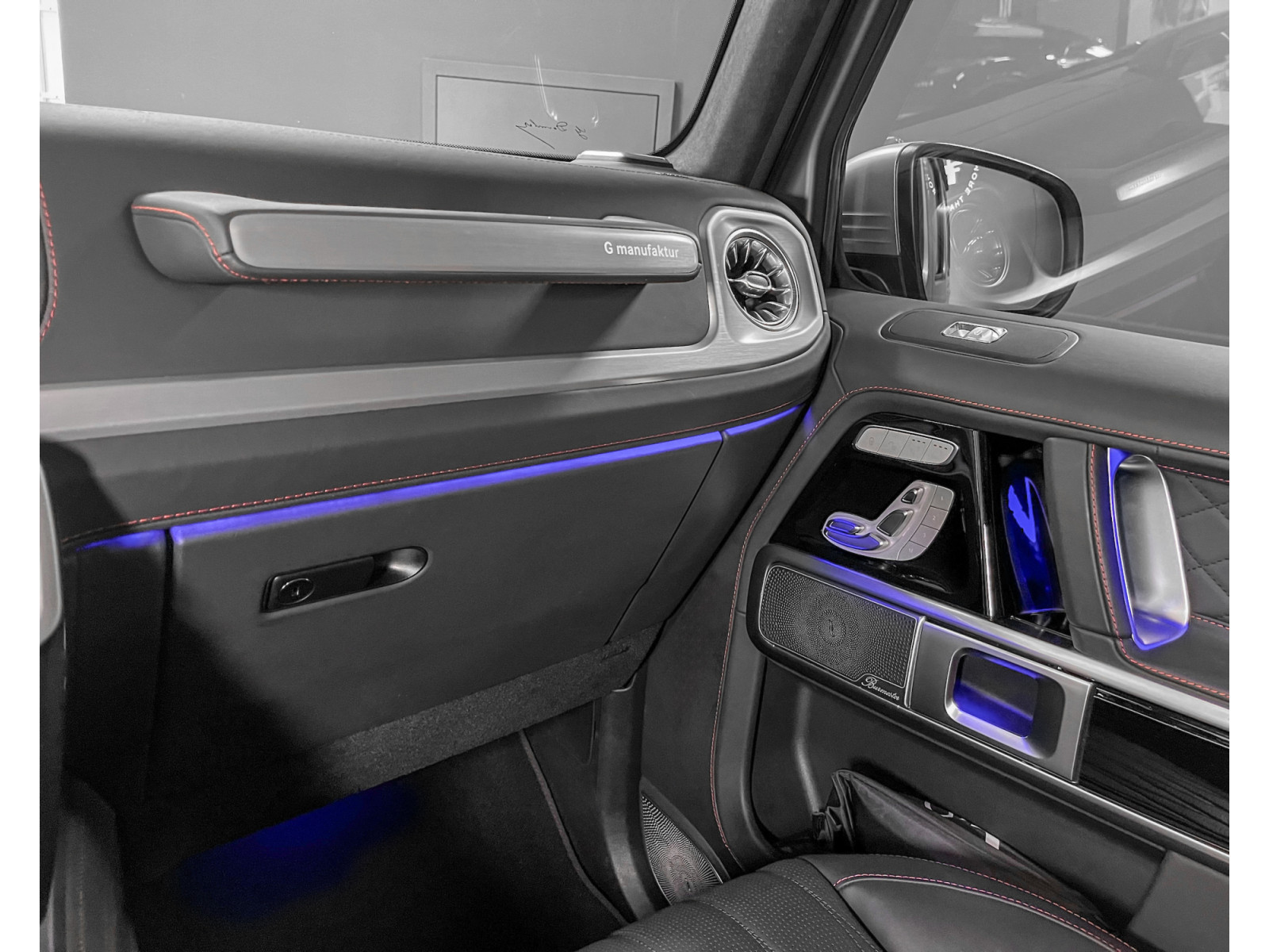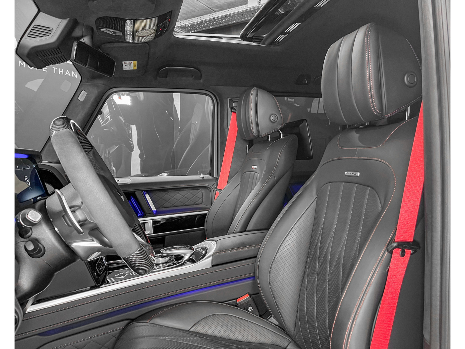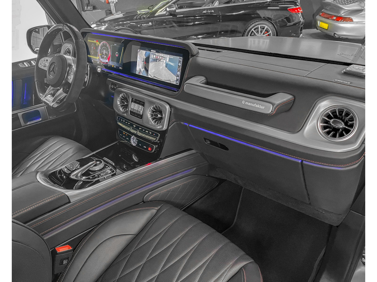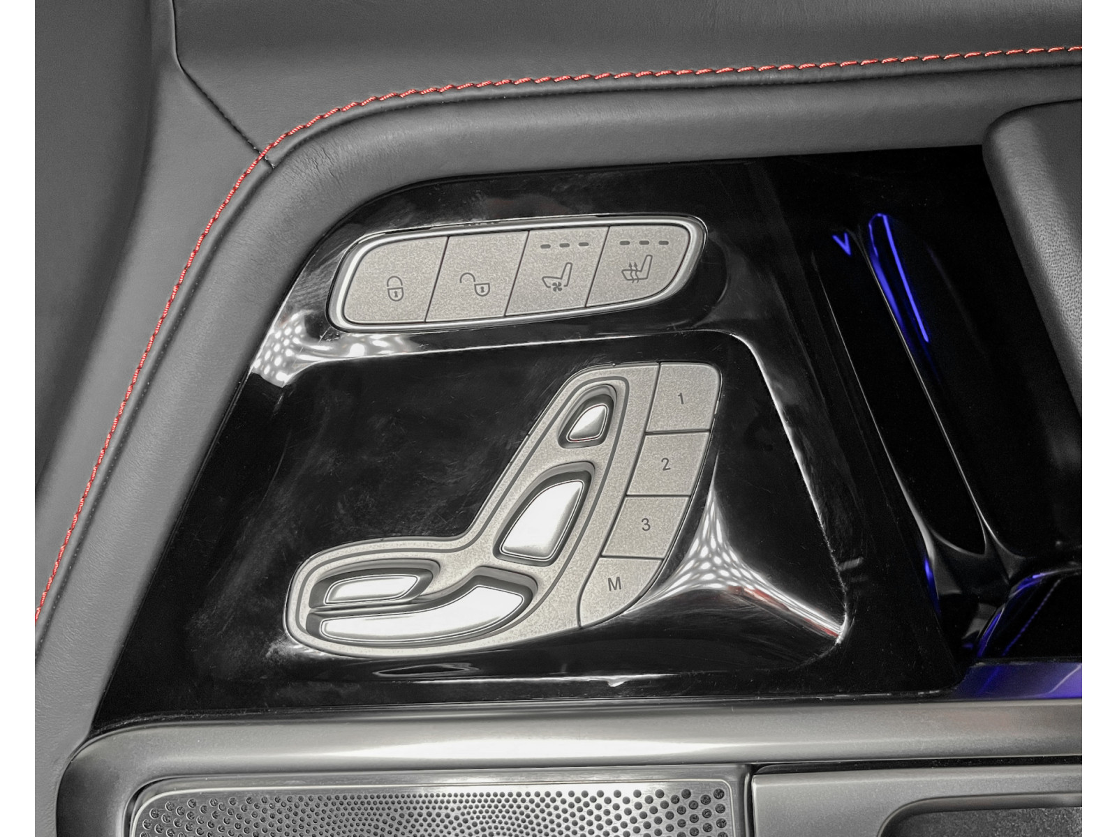 Éclairage d'ambiance (portée étendue), contrôle de confort énergisant, système de caméra 360 degrés, peinture : designo magno, volant (AMG Performance, Nappa / Dinamica), jantes LM 10x22 (AMG, rayons croisés, noir mat), housse de siège/revêtement : Cuir nappa MANUFAKTUR avec coutures contrastées, intérieur supérieur
