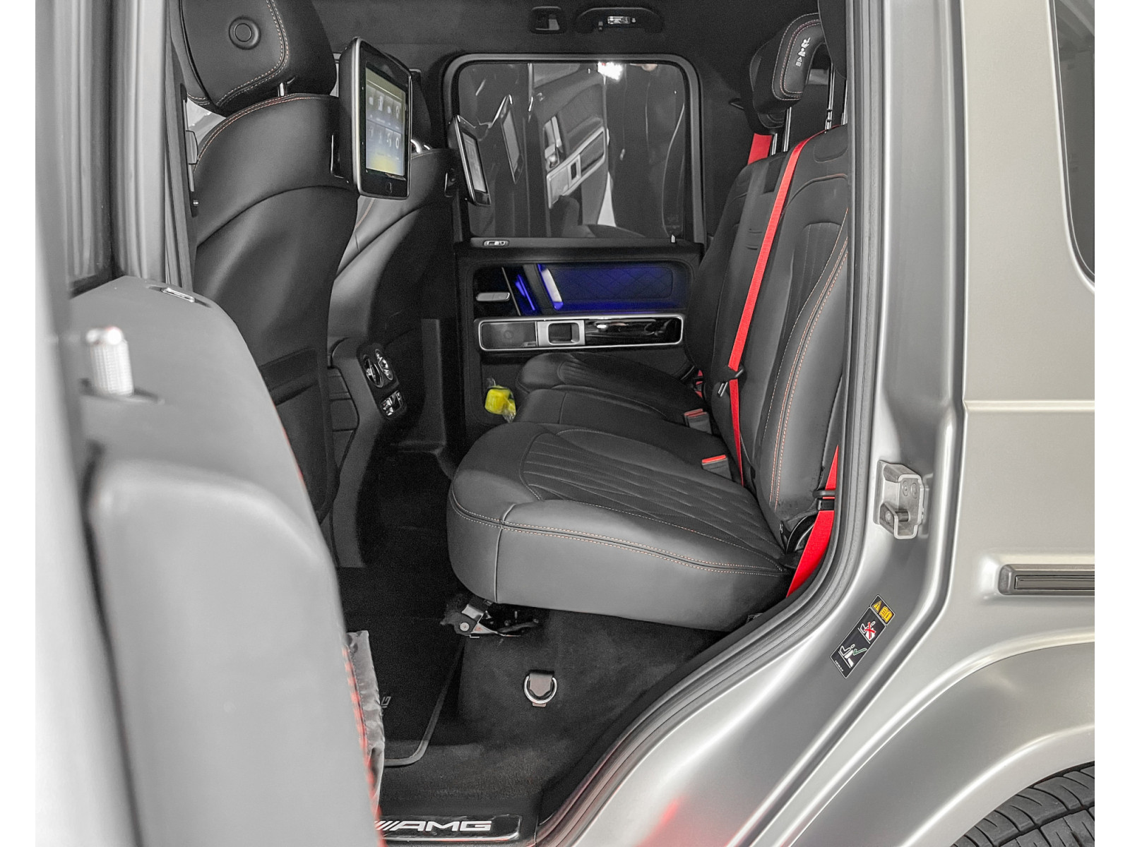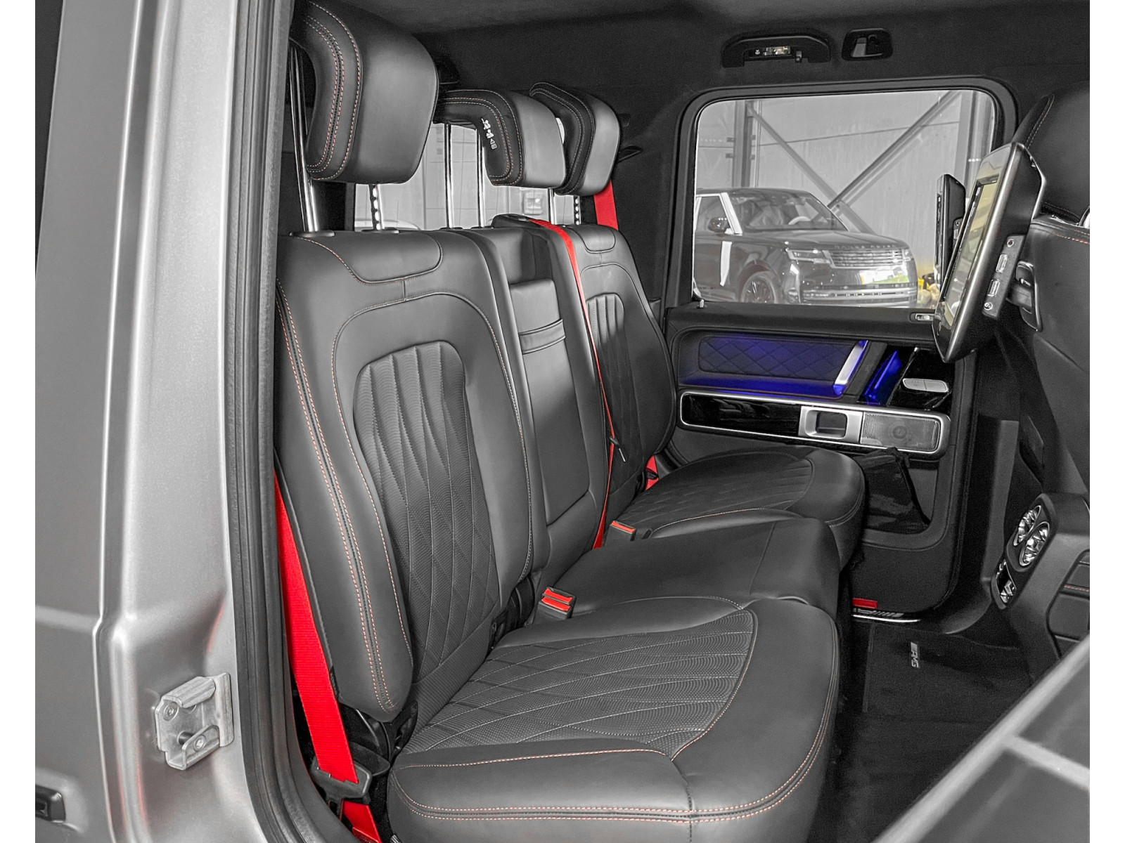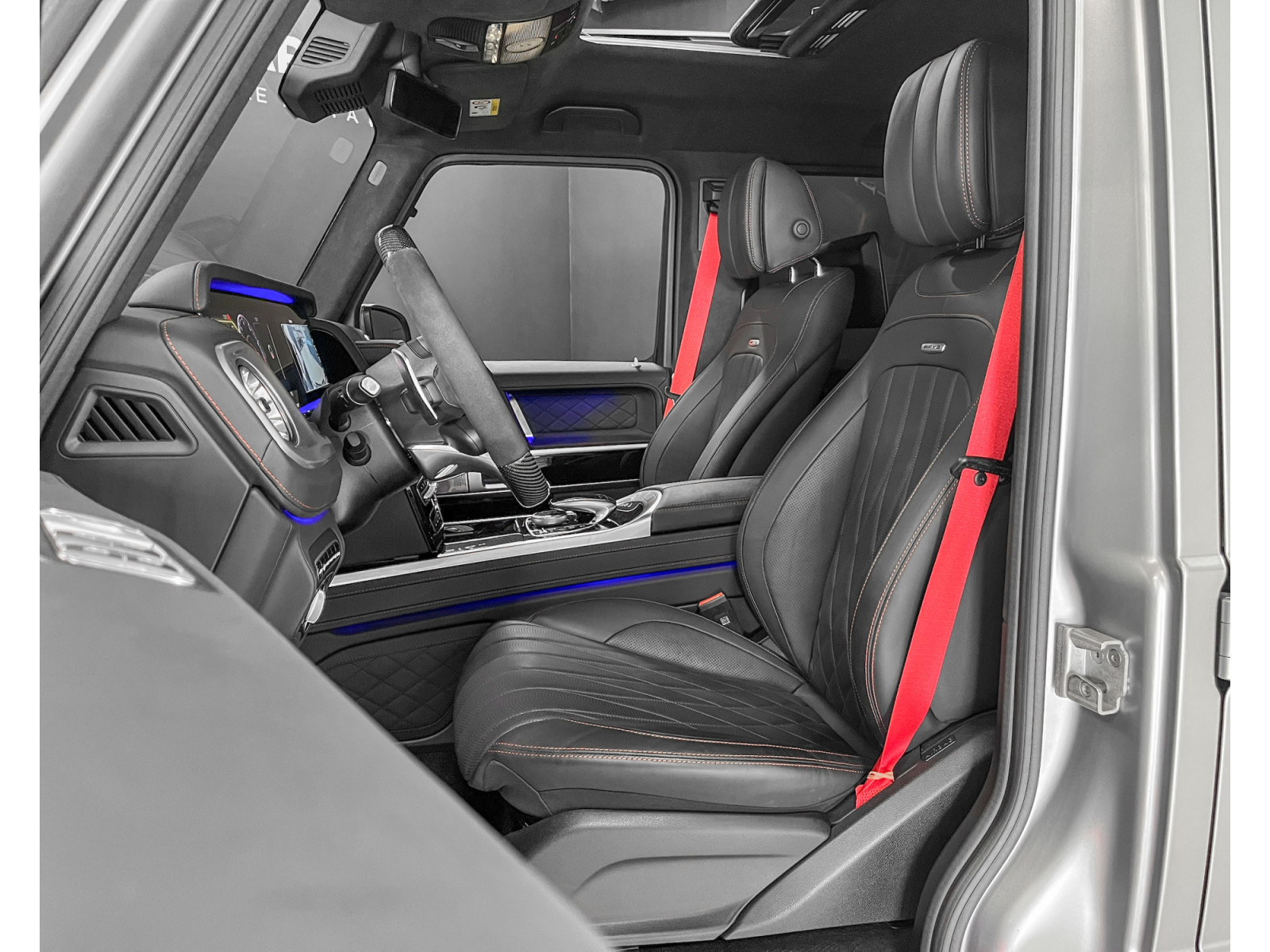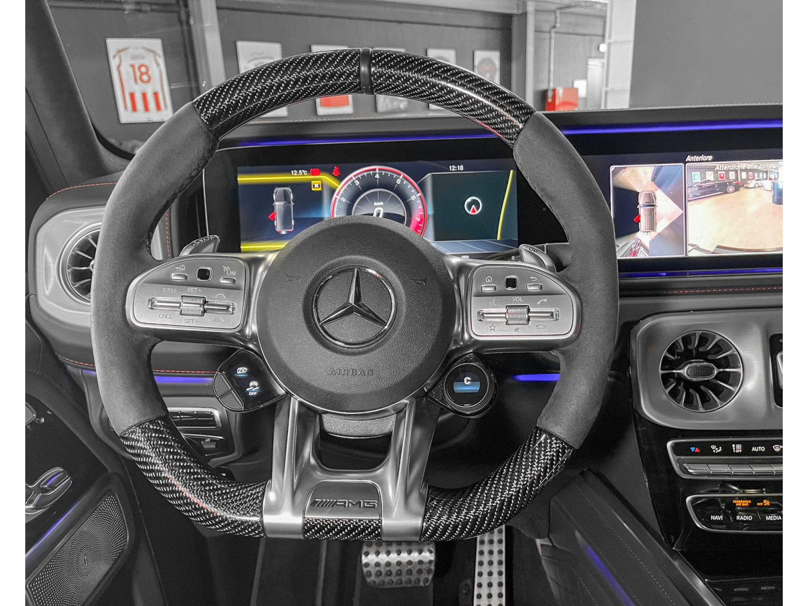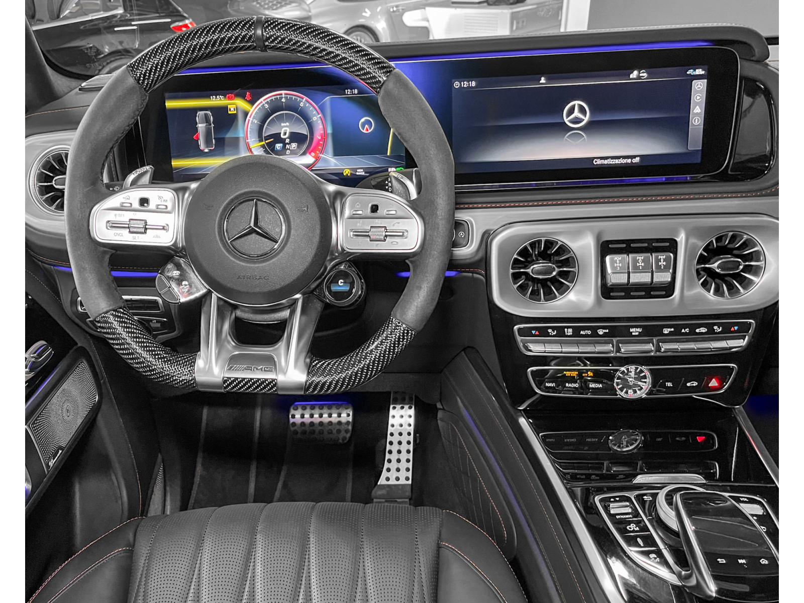 Éclairage d'ambiance (portée étendue), contrôle de confort énergisant, système de caméra 360 degrés, peinture : designo magno, volant (AMG Performance, Nappa / Dinamica), jantes LM 10x22 (AMG, rayons croisés, noir mat), housse de siège/revêtement : Cuir nappa MANUFAKTUR avec coutures contrastées, intérieur supérieur
