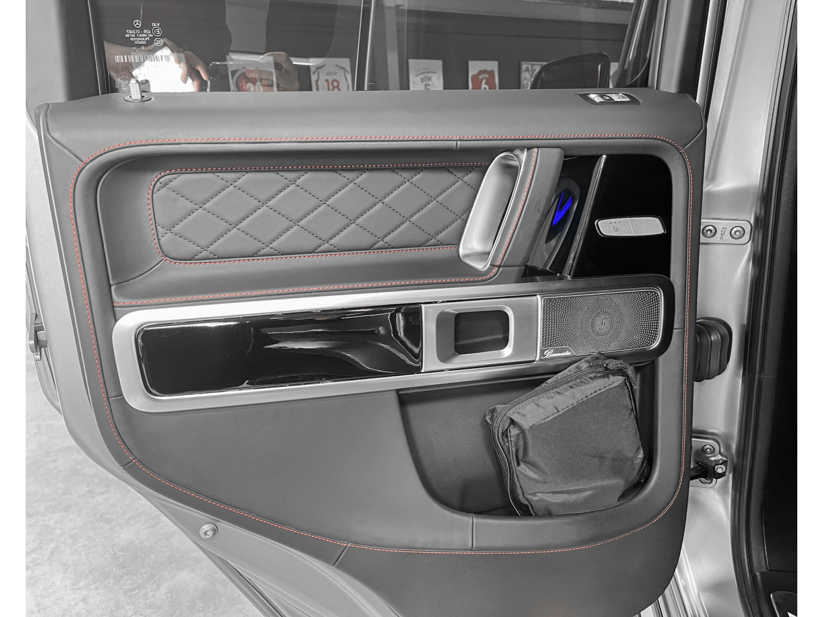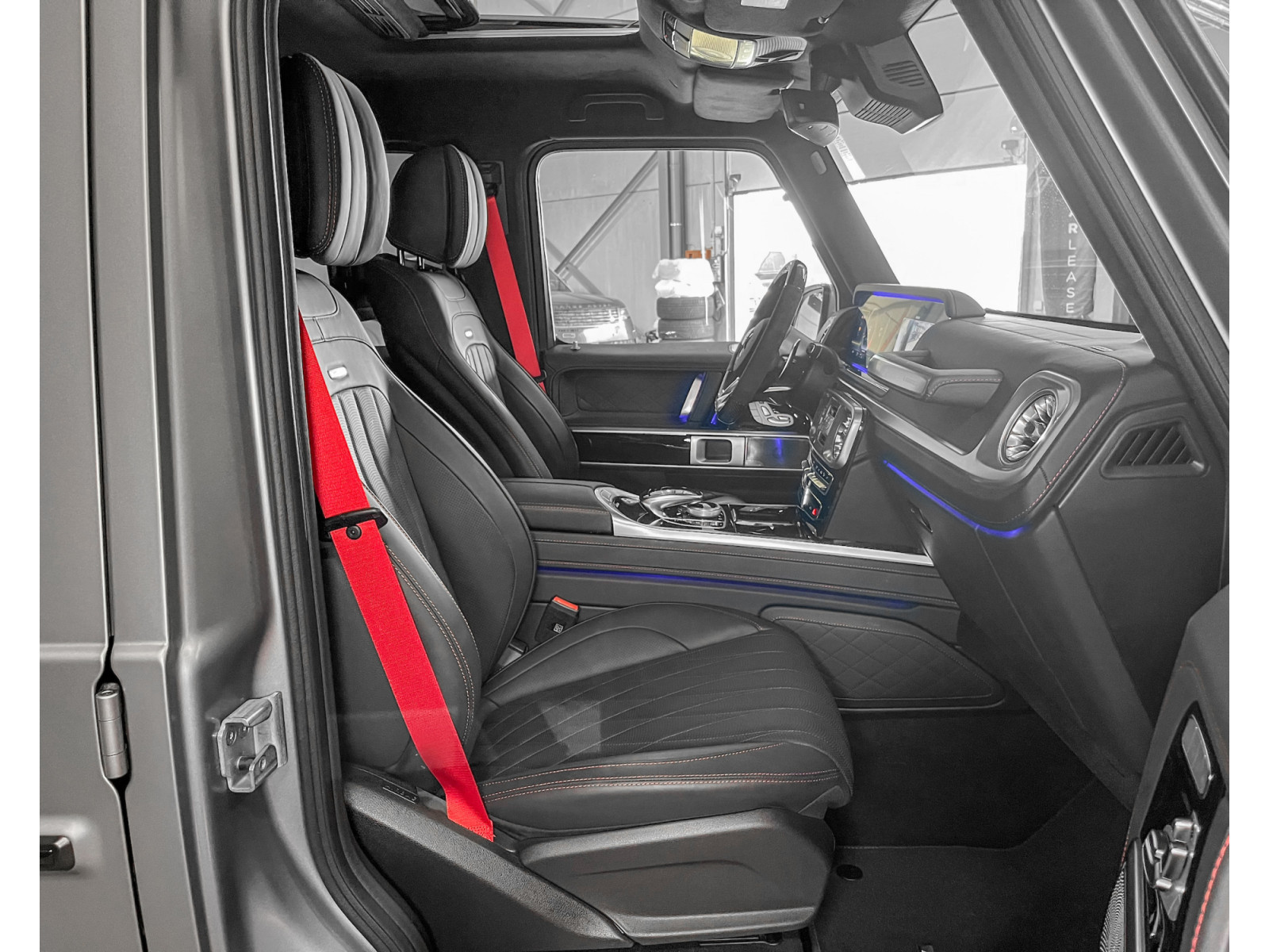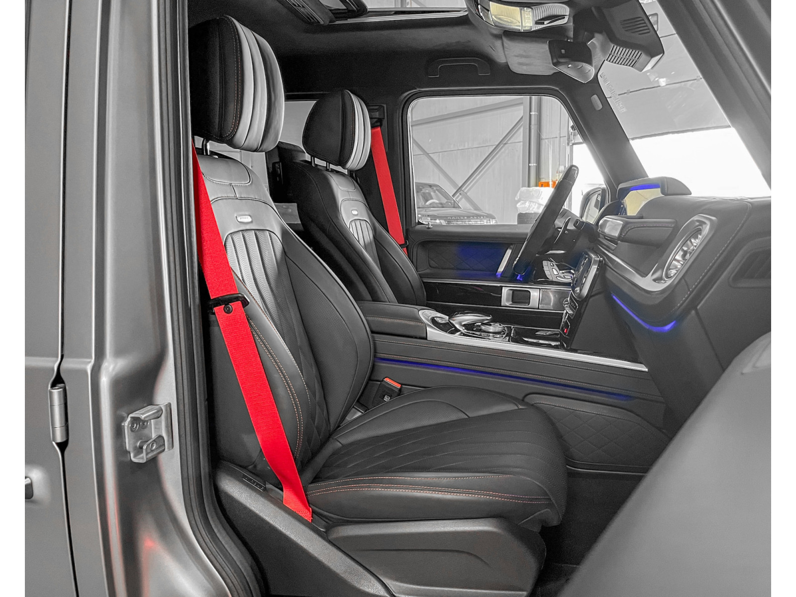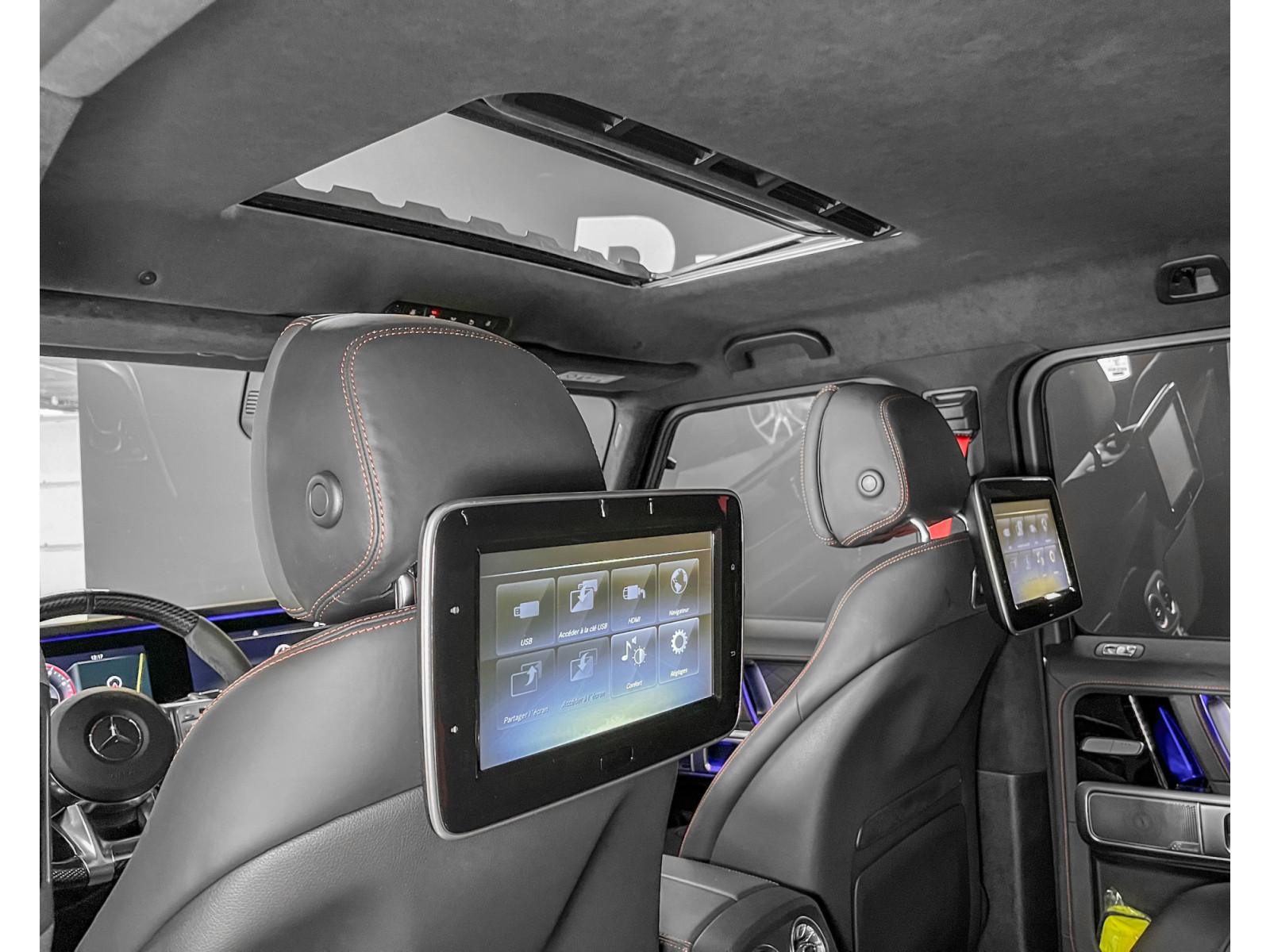 Éclairage d'ambiance (portée étendue), contrôle de confort énergisant, système de caméra 360 degrés, peinture : designo magno, volant (AMG Performance, Nappa / Dinamica), jantes LM 10x22 (AMG, rayons croisés, noir mat), housse de siège/revêtement : Cuir nappa MANUFAKTUR avec coutures contrastées, intérieur supérieur