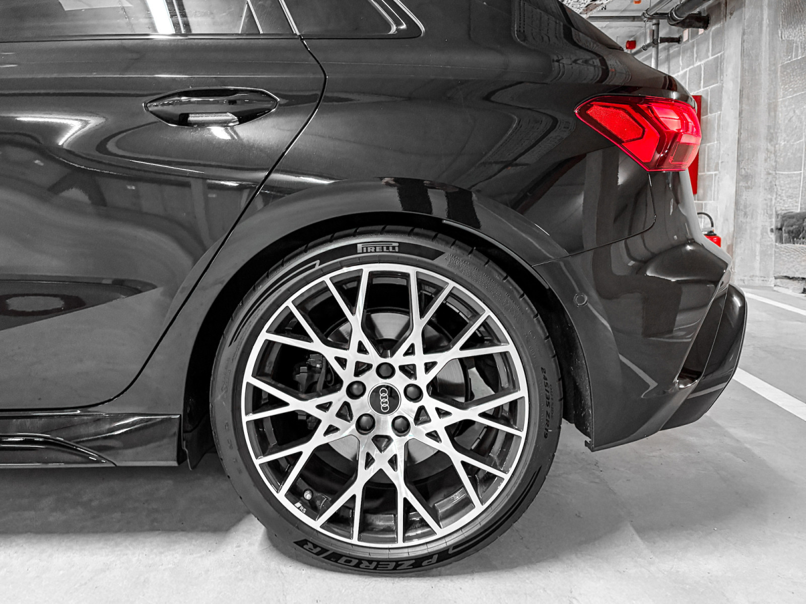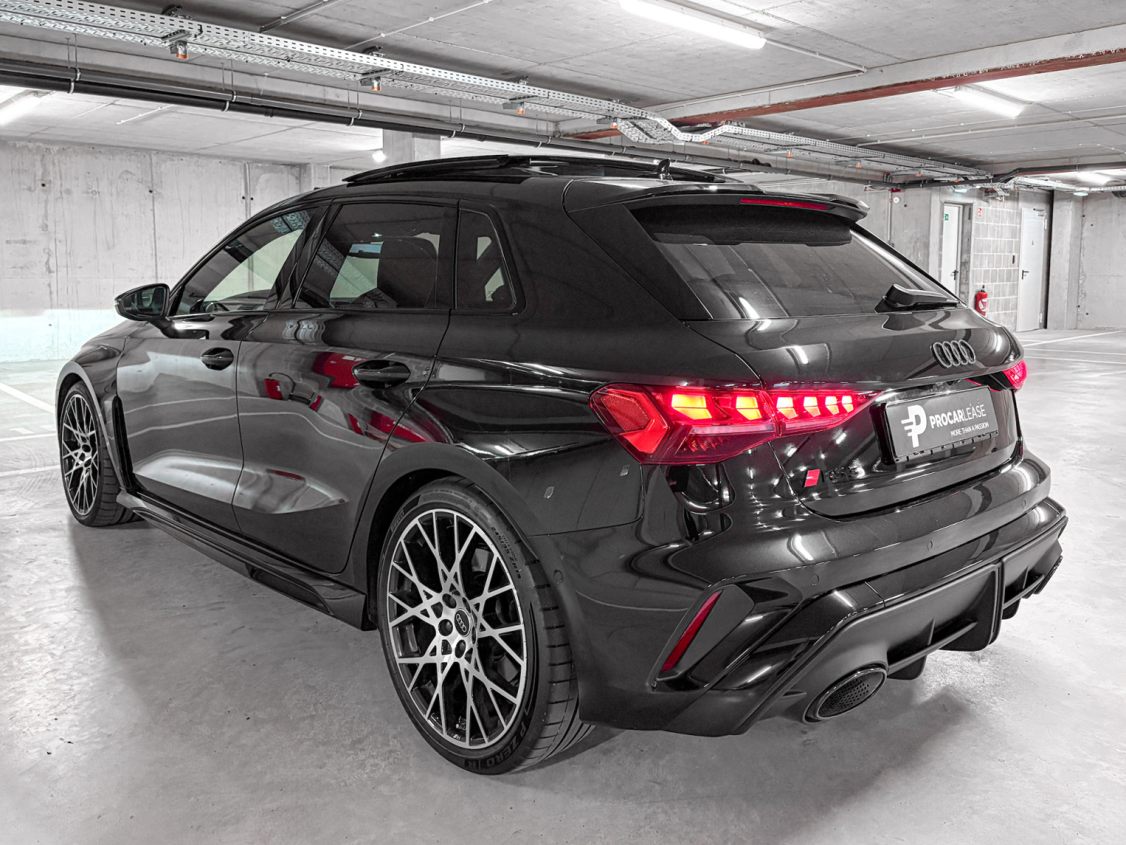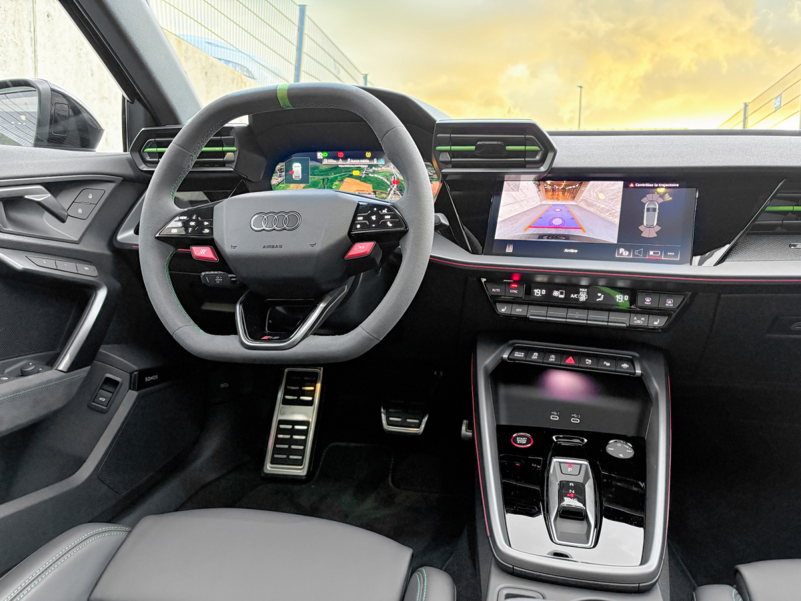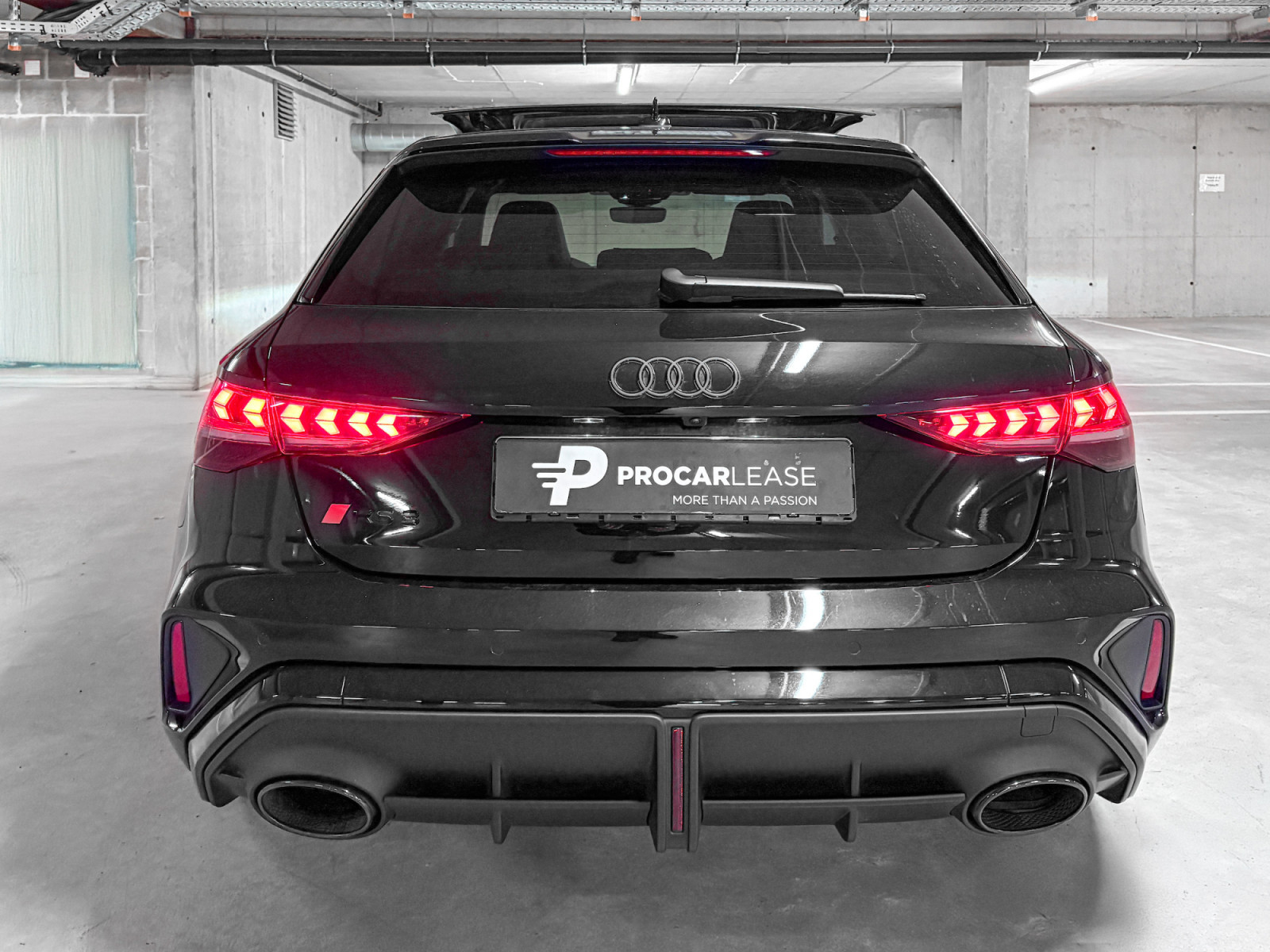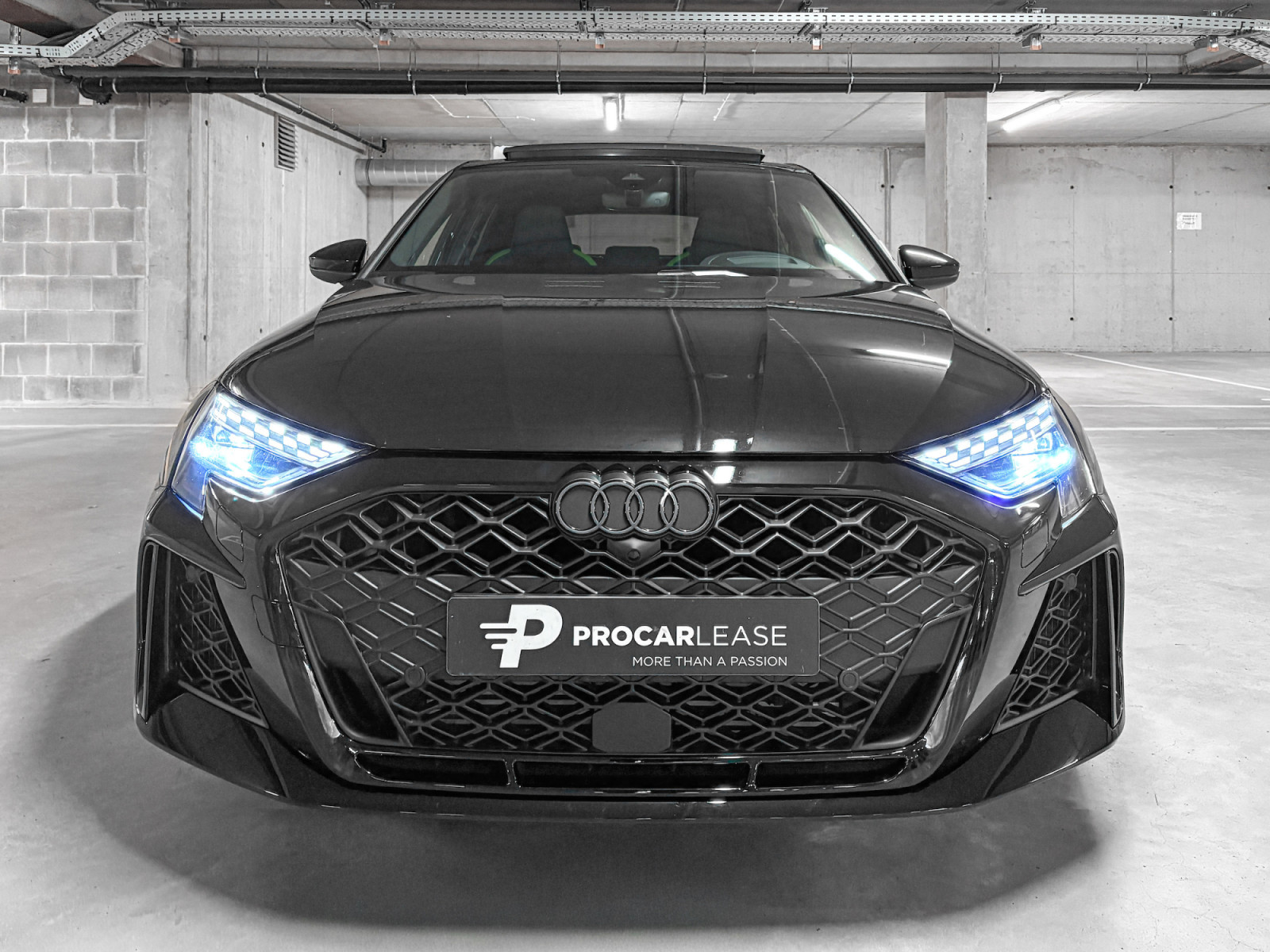 Pack rangement et coffre, Feu stop adaptatif, Airbag passager désactivable, Airbag conducteur/passager, Contrôle antipatinage (ASR) avec EDS, Audi connect (système d'appel d'urgence et d'assistance), Audi connect (télécommande), Audi Drive Select, Clignotants LED intégrés aux rétroviseurs extérieurs, Étriers de frein peints en noir, Ciel de pavillon en tissu noir, Becquet de toit, Seuils de porte avec inserts et inscriptions en aluminium, éclairés, Feux d'entrée à LED avec fonction de projection, Système d'assistance à la conduite : Détection de distraction et de fatigue, Système d'assistance à la conduite : Assistance à l'évitement, Système d'assistance à la conduite : Assistance au freinage (Audi pre sense front), Système d'assistance à la conduite : Assistance au freinage (collision consécutive), Système d'assistance à la conduite : Assistance d'urgence avec appel d'urgence automatique, Système d'assistance à la conduite : Assistance au stationnement, Système d'assistance à la conduite : Avertisseur de franchissement de ligne avec assistance d'urgence, Système d'assistance à la conduite : Reconnaissance des panneaux de signalisation, Système d'information du conducteur (FIS) avec écran couleur, Cache-bagages / store enrouleur, limiteur de vitesse, Feux arrière à LED avec clignotants dynamiques, Intérieur : Inserts décoratifs Carbon Atlas, Intérieur : Aspect Vanadium, Fixations Isofix pour siège enfant, carrosserie : 5 portes, verrouillage électrique enfant. combiné d'instruments numérique (virtual cockpit plus) au design RS, pack éclairage d'ambiance/contour (pro), système d'airbags de tête (sideguard), appuie-têtes arrière (3 voies), élargisseurs d'ailes, volant (sport/cuir - 3 branches, méplat en haut/en bas) avec multifonction et fonction de changement de vitesse, mise à jour du modèle, moteur 2,5 litres - 294 kW 20V TFSI, pack non-fumeur, pack style noir, pack style noir plus, frein de stationnement électromécanique, pédales en acier inoxydable, direction progressive, réception radio numérique (DAB), kit de réparation de pneus, pack extérieur RS noir mat, pare-chocs avant RS design sport, sièges sport RS à l'avant, dossier de banquette arrière divisé/rabattable (40:20:40), faibles émissions selon la norme antipollution Euro 6e, levier de vitesses/sélecteur de vitesse en Alcantara/microfibre, airbag latéral à l'avant, airbag latéral au centre avant (airbag d'interaction), suspension sport spécifique S/RS, système start/stop, prise de courant (connexion 12 V) à l'arrière (console centrale), pare-chocs Sport Design (S-line), pare-chocs Sport Design avec insert diffuseur arrière, inserts de garniture de porte en Alcantara, interface Bluetooth universelle, interface USB pour les passagers arrière