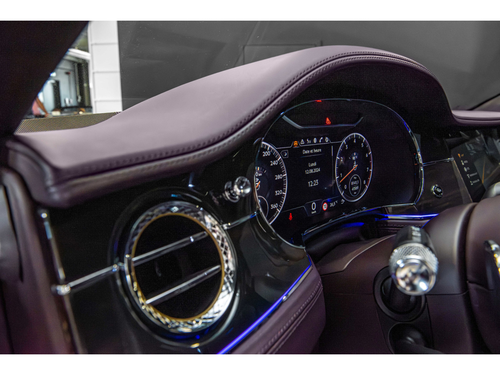 Touring Specification/ City Specification/ Diamond Knurling Specification/ Mood Lighting Specification/ Front Seat Comfort Specification/ Mulliner Driving Specification with 22" Painted Alloy Wheel/ EXTERIOR LED Welcome Lamps by Mulliner/ Welcome Home Lighting/ Standard Brakes with Red Painted Calipers/ Without Exterior Badge in Wing Vent/ Heated Windshield/ CONVENIENCE Fresh Air Intake and Air Ioniser/ AUDIO & COMMUNICATION Bang & Olufsen for Bentley/ Inductive Phone ChargerT/ ECHNOLOGY Bentley Rotating Display/ Adaptive Cruise Control/ MATS AND RUGS Deep Pile Overmats -