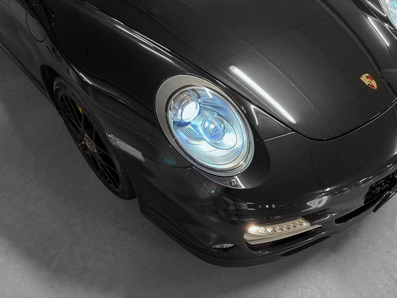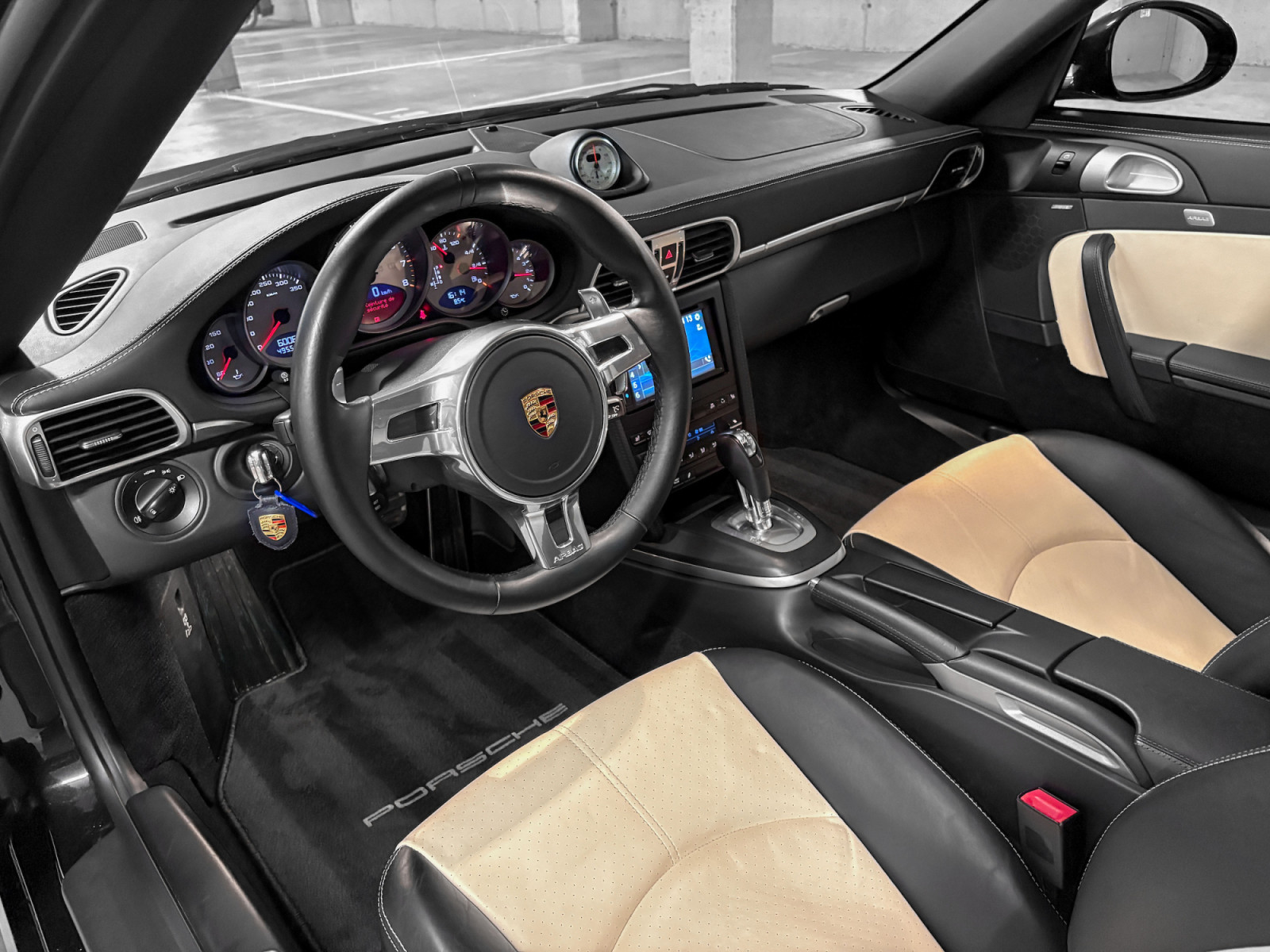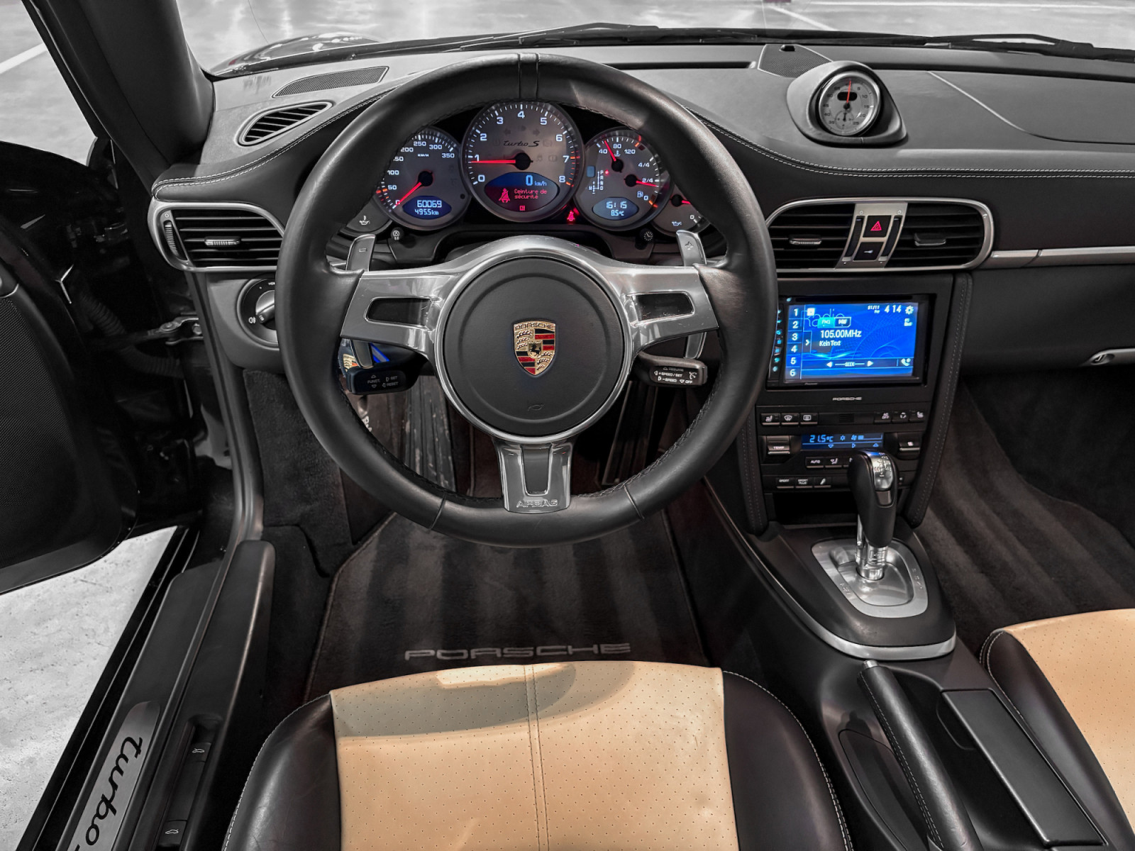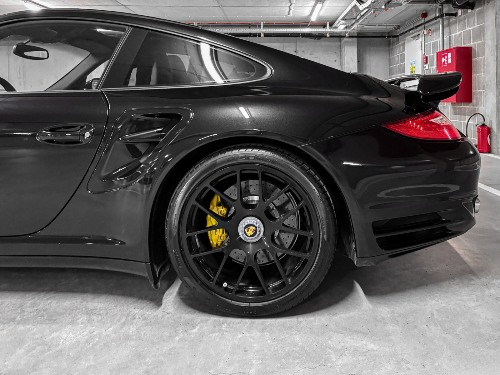 Rétroviseur extérieur/intérieur avec obscurcissement automatique et capteur de pluie, panneaux d'entrée (acier inoxydable), intérieur : cuir, jantes LM avant/arrière : 8,5x19 / 11x19 (roue Turbo II), peinture métallisée, console centrale arrière peinte, écouteur passif pour téléphone (PCM), système de surveillance de la pression des pneus, sièges avant chauffants, Sport Chrono Package Plus, bouchon de réservoir aspect aluminium, module téléphonique pour Porsche Communications Management (PCM), prééquipement pour système de localisation des véhicules