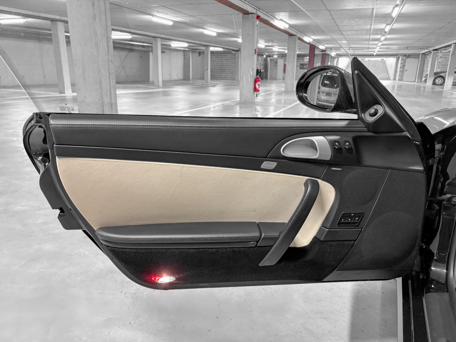 3. Feu stop, airbag côté conducteur/passager, type de conduite : propulsion, affichage des instruments à fond noir, phares bi-xénon, ordinateur de bord, cabriolet, système d'aide à la conduite : aide au stationnement, pare-brise avec filtre à bande au niveau du toit, tapis de sol, lunette arrière chauffante, équipement intérieur : bouches d'aération, lattes aspect aluminium, équipement intérieur : garniture de tableau de bord aspect aluminium, filtre d'habitacle : filtre à charbon actif (filtre à odeurs), supports Isofix pour siège enfant sur siège passager avant, carrosserie : 2 portes, climatisation automatique, coffre et capot moteur - déverrouillage électrique, système d'airbag de tête Porsche Side Impact Protection System (POSIP), colonne de direction (volant) réglable, moteur 3,6 litres - 254 kW KAT, interface lecteur de musique (interface universelle pour iPod / MP3 / ...), feu antibrouillard arrière, Porsche Communications Management (PCM ) avec module de navigation DVD (étendu), kit de réparation des pneus, insert de levier de vitesses/sélecteur en aluminium, inscription 911 chromée, airbag latéral avant, BOSE système audio, commande électrique du toit, vitres teintées, déflecteur d'air