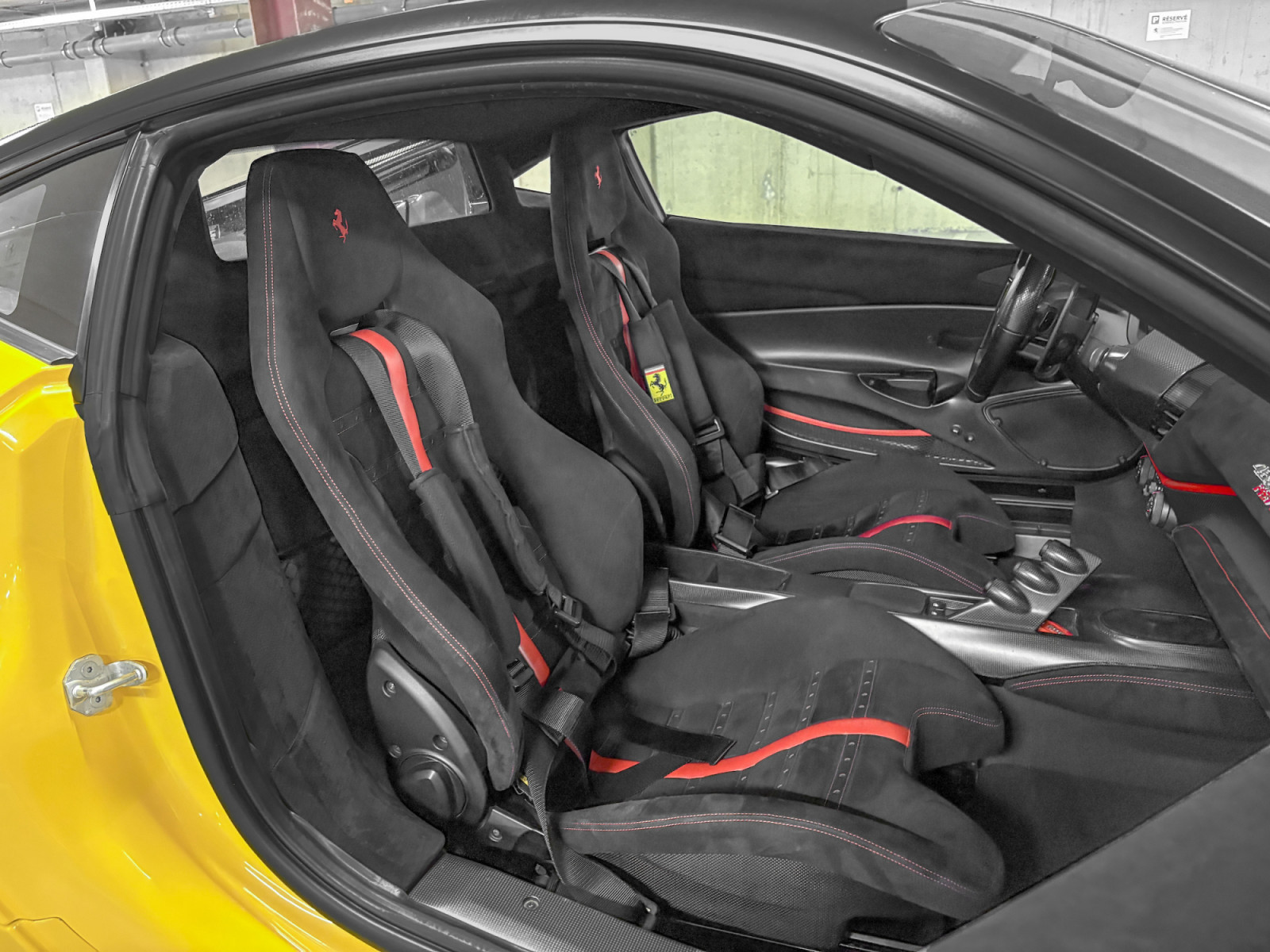 YELLOW REV. COUNTER DAYTONA RACING SEATS RACING SEAT LIFTER ALCANTARA REAR WALL.