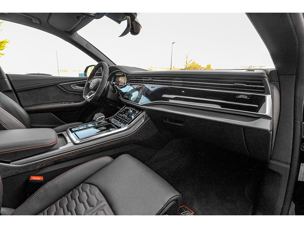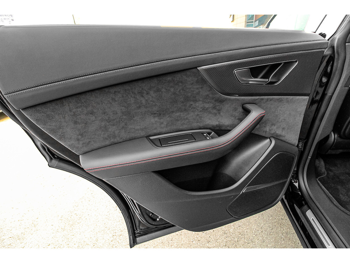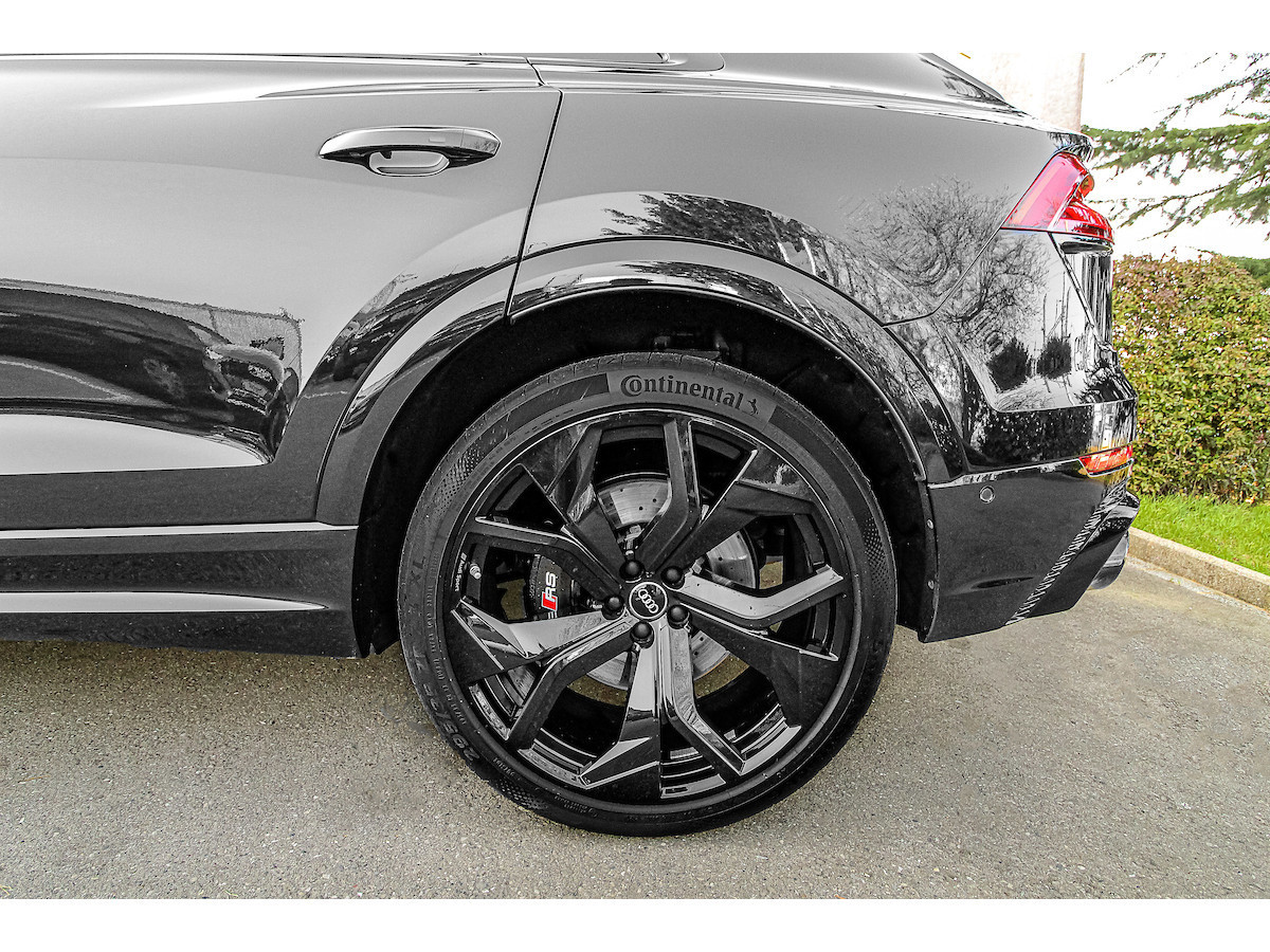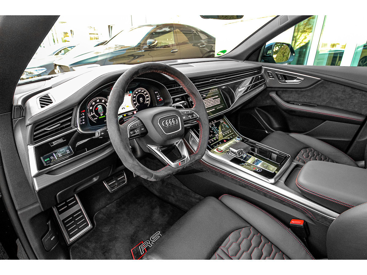 Pack d'assistance au stationnement, Pack d'assistance aux voyages, Interface smartphone Audi, Rétroviseurs extérieurs électriques, chauffants et rabattables avec fonction anti-éblouissement automatique et fonction mémoire, Antivol de roues, Affichage tête haute, Inserts décoratifs intérieurs : inserts en sergé de carbone, Fixations Isofix pour siège enfant sur le siège passager avant, Combiné d'instruments numérique (virtual cockpit plus) avec design RS, Jantes alliage 10,5 x 23 pouces (5 branches en Y, design rotor, noires), Phares Matrix LED, Peinture métallisée, Pack style aluminium mat, Toit ouvrant panoramique (électrique à l'avant, fixe à l'arrière), Système d'échappement sport RS, Fermeture assistée des portes, Sellerie cuir Valcona perforé avec surpiqûres en nid d'abeille et ventilation, Système audio Bang & Olufsen, Pare-chocs RS, Peinture intégrale, Vitres arrière surteintées Désactivation de l'airbag passager, airbags conducteur/passager, direction intégrale, Audi connect (services Internet), Audi connect (système d'appel d'urgence et d'assistance), Audi Drive Select, interface musicale Audi, commandes aspect verre avec inserts aluminium étendus, étriers de freins peints en noir, ciel de toit en tissu noir, aileron de toit RS, doubles pare-soleil (coulissants et extensibles), aide au stationnement avant, latérale et arrière, acoustique et visuelle avec affichage panoramique, seuils de porte éclairés avec incrustations et lettrage en aluminium, système d'assistance à la conduite : assistance au freinage (Audi pre sense front), système d'assistance à la conduite : système de protection des occupants (Audi pre sense basic), système d'assistance à la conduite : avertisseur de franchissement de ligne, système d'assistance à la conduite : reconnaissance des panneaux de signalisation, pare-brise athermique, clé télécommandée, tapis de sol en velours, véhicule sans barres de toit, cloison de séparation du coffre (filet), hayon électrique. Fonctionnement manuel (ouverture + fermeture), Pack Brillant, Intérieur : Éléments intérieurs en cuir (partie supérieure et inférieure), Rétroviseur intérieur à atténuation automatique, Ioniseur pour la purification de l'air (Système de qualité de l'air), Fixations Isofix pour sièges enfant, Carrosserie : 4 portes Climatisation automatique 4 zones, pack éclairage d'ambiance, airbags latéraux de tête, protection de seuil de chargement en acier inoxydable, colonne de direction à réglage électrique, hybride léger 441 kW (moteur V8 32V TFSI 4,0 L), système multimédia MMI Navigation Plus avec MMI Touch, pack non-fumeur, filtre à particules pour moteurs essence (FAP), frein de stationnement électromécanique, pédales et repose-pied en acier inoxydable, radio numérique terrestre (DAB), empattement de 2 998 mm, kit de réparation de pneus, système de surveillance de la pression des pneus, banquette arrière rabattable et coulissante (40/20/40), faibles émissions selon la norme Euro 6d, gicleurs de lave-glace chauffants, airbags latéraux avant, sièges avant à réglage électrique (avec mémoire), sièges avant chauffants, suspension sport (suspension pneumatique adaptative), système Start/Stop, pare-chocs avant, interface Bluetooth universelle, système d'accès et de démarrage sans clé