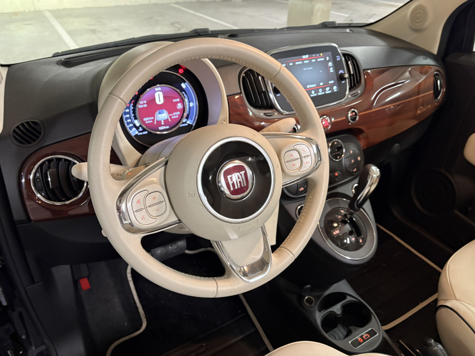Volant en cuir avec inserts en bois, multifonction audio