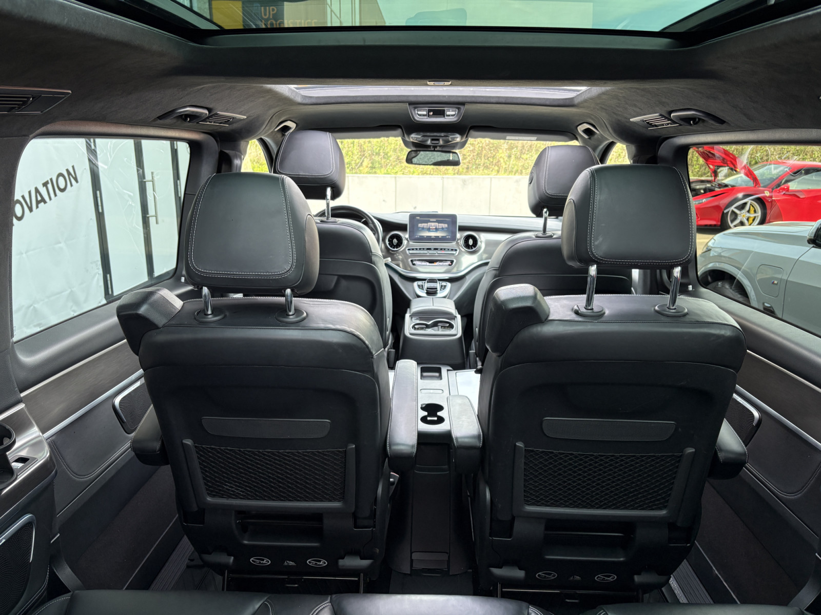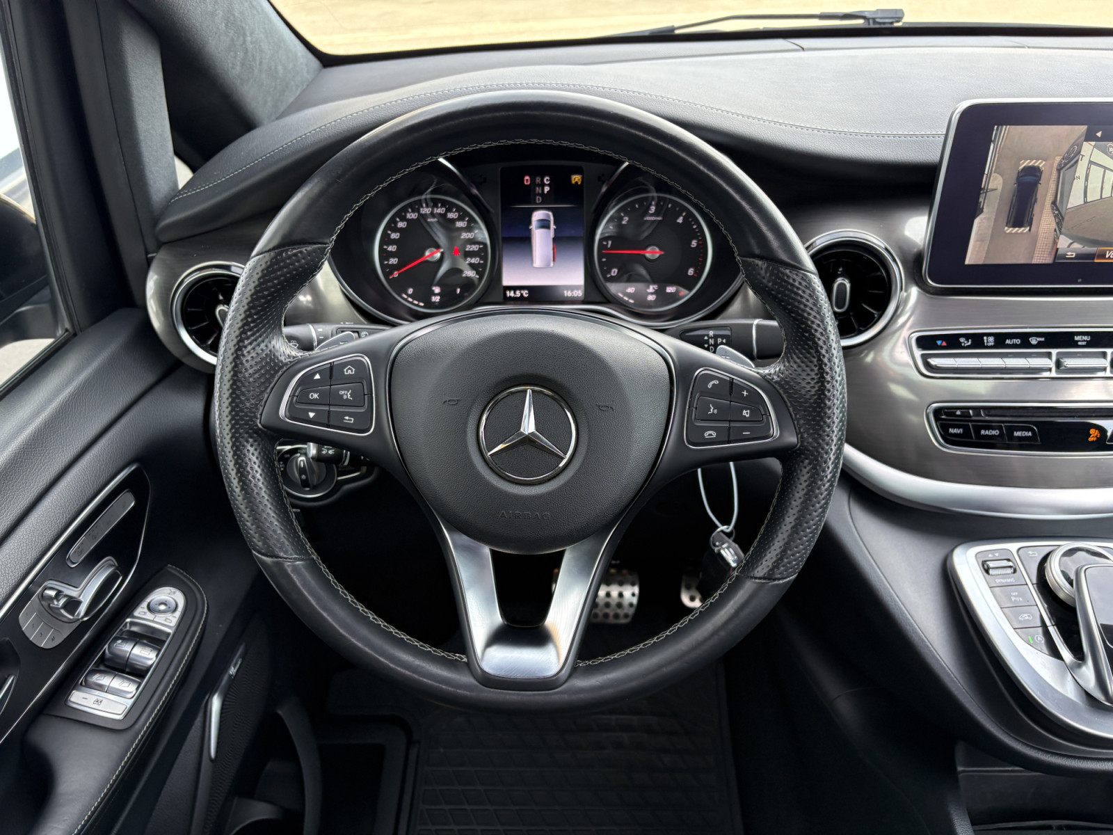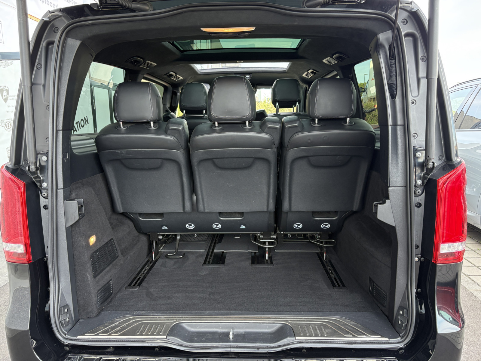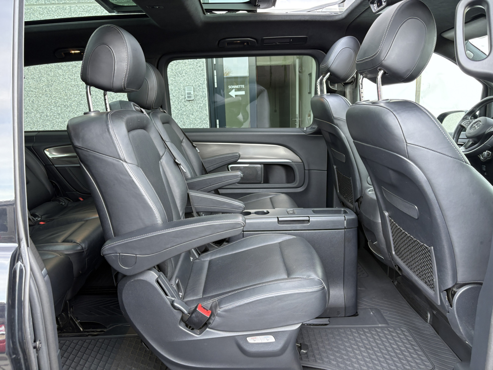 Filet de rangement sur le dossier du siège avant gauche, feu stop adaptatif, airbag passager, airbag conducteur, éclairage d'ambiance, aide au démarrage en côte, attelage de remorque : branchement électrique pour prise de remorque, transmission intégrale, indicateur de niveau de liquide lave-glace, partie supérieure du tableau de bord en similicuir, accoudoirs d'habitacle, rétroviseurs extérieurs asphériques, rétroviseurs extérieurs électriques. Réglables et chauffants, tous deux, rétroviseurs extérieurs avec clignotants intégrés, affichage de la température extérieure, éclairage de la poignée de maintien arrière avec spot de lecture, pack BlueEfficiency, revêtement de sol : moquette dans l'habitacle, revêtement de sol : moquette dans l'espace de chargement/passagers, assistance au freinage, système de freinage avec ABS+ASR, ciel de toit Dinamica noir, ligne d'équipement Exclusive, pack design intérieur, direction directe avec assistance variable à la direction, allumage automatique des phares, poignée d'accès arrière, seuils de porte avec inscription Mercedes-Benz (éclairés), éclairage d'accès, Exclusive, système d'assistance à la conduite : Attention Assist (capteur de détection de somnolence), système d'assistance à la conduite : Highbeam Assistant Plus, système d'assistance à la conduite : Gestion de panne, système d'assistance à la conduite : Crosswind Assist, système d'assistance à la conduite : Traffic Sign Recognition, vitres des portes arrière/hayon avec système d'essuie-glace/lave-glace, vitre dans le compartiment de chargement/FG : - fixe, avant gauche, vitre dans le compartiment de chargement/FG : - fixe, avant droite, frein de stationnement électrique, verrouillage des portes coulissantes (actif), boîte de vitesses automatique GTronic - (9 vitesses), prétensionneur de ceinture, poignées de maintien à l'arrière, boîte à gants verrouillable, réservoir d'urée (AdBlue) : 24 Ltr., hayon avec système d'ouverture et de fermeture automatique, lunette arrière ouvrante, lunette arrière chauffante, Intelligent Light System LED, carrosserie/structure : bus, carrosserie/structure : longue, verrouillage de sécurité enfant, climatisation arrière automatique (Tempmatik), combiné d'instruments avec écran couleur, climatisation automatique Thermotronic comfort, éclairage de confort dans l'habitacle/l'espace de chargement, module de communication Mercedes me connect (services basés sur Internet), système d'airbag de tête (window bag), airbag tête-épaule (thorax bag) côté conducteur/passager, volant (colonne de direction réglable mécaniquement), volant multifonction avec ordinateur de bord, réglage de la portée des phares, système d'appel d'urgence Mercedes-Benz, peinture métallisée, console centrale avec compartiment réfrigéré, mise à jour du modèle, moteur 2,0 Ltr. - 176 kW CDI KAT, système de navigation pour système multimédia MBUX, toit ouvrant panoramique à l'avant, électrique, avec toit panoramique à l'arrière, pack stationnement avec caméra 360°, immatriculation voiture de tourisme, chauffage PTC, empattement 3200 mm, système de surveillance de la pression des pneus, rétroviseur intérieur, faibles émissions selon la norme antipollution Euro 6d-TEMP, essuie-glaces avec capteur de pluie, porte coulissante pour le compartiment de chargement/passagers à gauche, porte coulissante à gauche, porte coulissante électrique à droite, équipement des sièges : système de siège enfant Isofix, équipement des sièges : mécanisme de fixation rapide pour système de rails de siège, housse de siège/rembourrage : cuir Nappa, sièges de la cabine de conduite : sièges conducteur et passager avant avec climatisation, sièges de la cabine de conduite : siège conducteur avec commande électrique. réglable (avec mémoire), sièges dans la cabine du conducteur : siège conducteur avec soutien lombaire, sièges dans le compartiment de chargement/véhicule : 1re rangée, 1 siège simple à gauche, sièges dans le compartiment de chargement/véhicule : 1re rangée, 1 siège simple à droite, sièges dans le compartiment de chargement/véhicule : 1re rangée, sièges arrière climatisés, pare-soleil avec rétroviseurs (éclairés), pack rétroviseurs, pack sport extérieur, prise (connexion 12 V) dans le compartiment de chargement/passagers, pare-chocs peints/bandes de pare-chocs latérales + poignée sur le hayon, système d'encadrement Burmester, vitres arrière teintées/verre noir, batterie polaire 92 Ah, préparation pour système de navigation (pour système multimédia MBUX), conduit d'air chaud vers le compartiment de chargement/passagers, affichage de l'intervalle d'entretien Assyst, vitrage isolant thermique