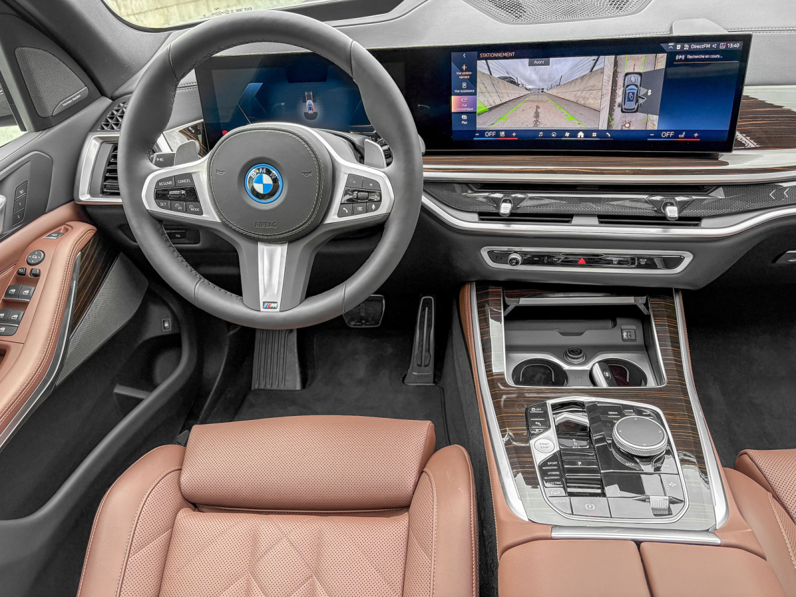 Équipements supplémentaires : Suspension adaptative M-Technic, Pack aérodynamique M-Technic, Protection acoustique des piétons (son extérieur), Peinture Blanc Alpin (uni), Éclairage d'ambiance, Pack Équipements Professionnels Connectés, Équipements extérieurs Shadow Line, Pack Rétroviseurs extérieurs (étendu), BMW IconicSounds électrique (générateur de son), BMW Live Cockpit Plus, Sièges avant sport BMW, Sièges avant sport BMW électriques. réglable (gauche avec mémoire), récupération d'énergie de freinage (système de récupération), tuner DAB (réception radio numérique), ciel de pavillon anthracite, barres de toit en aluminium satiné, dispositif antivol pour roues (antivols de jante), moteur électrique de 145 kW (propulsion hybride), système d'assistance à la conduite : Active Guard (assistance au freinage), système d'assistance à la conduite : assistant de feux de route, tapis de sol en velours, cloison de compartiment à bagages (réseau), système de haut-parleurs hi-fi, socle de chargement à induction pour smartphones (chargement sans fil), intérieur : bois précieux Fineline, carrosserie : 5 portes, câble de chargement (5,0 m) avec prise de type 2 (mode 3, 22 kW), câble de chargement AC / DC (20 A / 230 V), support lombaire pour siège avant gauche, volant (Sport/Cuir M-Technic) avec multifonction, jantes en alliage, M Sport, mise à jour du modèle, moteur 3,0 Ltr. - 230 kW (Système : 360 kW) Hybride, Filtre à particules essence (OPF), Pack Aide au stationnement, Système de personnalisation (eSIM personnelle), Empattement standard, Système de surveillance de la pression des pneus, Faibles émissions selon la norme antipollution Euro 6e, Chargeur rapide flexible (Mode 2), Système de service : Services ConnectedDrive, Système de service : Appel d'urgence légal, Système de service : Appel d'urgence intelligent avec TeleServices, Système de sécurité Active Protection, Revêtement de siège : Cuir synthétique Sensafin, Sièges avant chauffants, Système Start/Stop (Fonction), Triangle de présignalisation