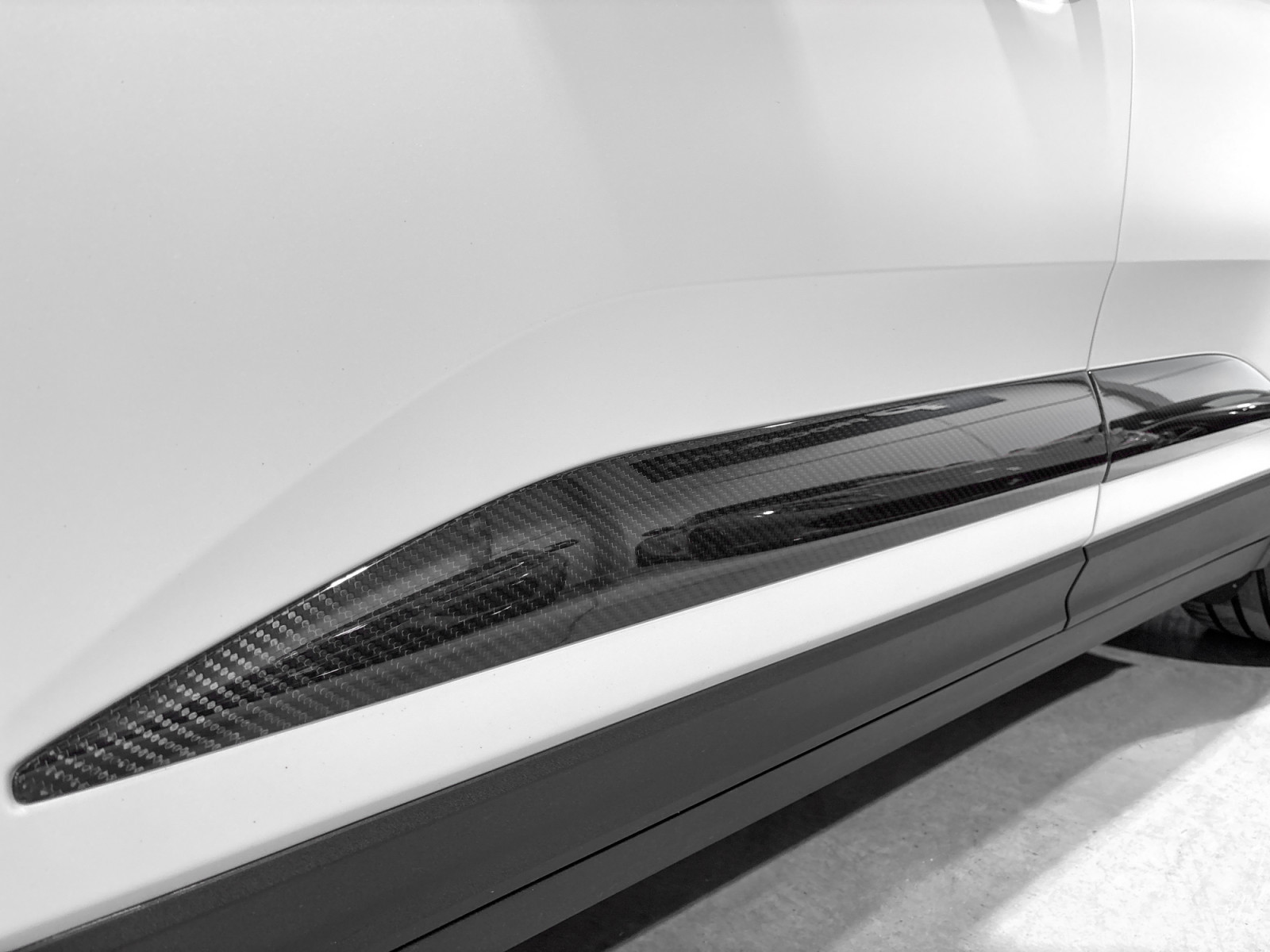 6FQ Partie supérieure des rétroviseurs extérieurs en carbone avec partie inférieure et base de rétroviseurs peints en Noir (finition brillante)