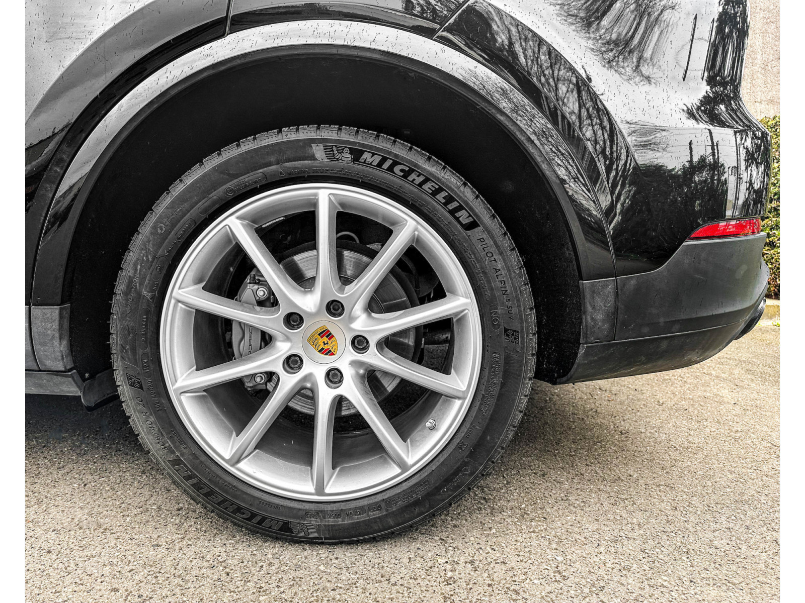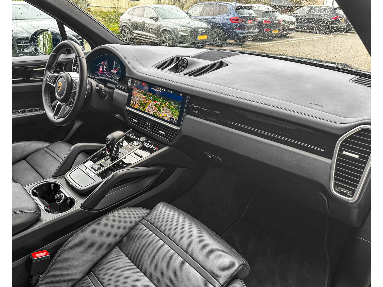 Rangement pour smartphone, éclairage d'ambiance, Apple CarPlay avec commande vocale, rétroviseur extérieur/intérieur avec atténuation automatique, rails de toit, pack extérieur, système d'aide à la conduite : assistant de stationnement avant et arrière avec caméra de recul et vue panoramique, système d'aide à la conduite : assistant de changement de voie , Tapis de sol, régulateur de vitesse (tempomat) avec contrôle de distance (étendu), Home-Link (ouvre-porte de garage), intérieur : cuir lisse, couleur cuir standard, ioniseur pour la purification de l'air, sièges confort à l'avant avec réglage du siège en 14 directions et pack mémoire, réservoir de carburant : 90 litres, Volant chauffant (AV supplémentaire au volant), Jantes LM avant/arrière : 9,5x21 / 11x21 (volant Cayenne Turbo Design, platine, couleur carrosserie, peint avec une finition satinée), Phares Matrix LED avec Porsche Dynamic Light System Plus (PDLS+), toit ouvrant panoramique électrique en deux parties à l'avant, réception radio numérique (DAB+), enjoliveurs de roues colorés avec écusson Porsche, pack fumeur, airbag latéral arrière, direction assistée Plus ( en fonction de la vitesse), ventilation des sièges avant, chauffage des sièges avant, système audio BOSE, pack sport chrono, sorties d'échappement sport en optique 4 tubes, noir, Vehicle Tracking System Plus (PVTS Plus), vitrage arrière assombri (vitrage privé)