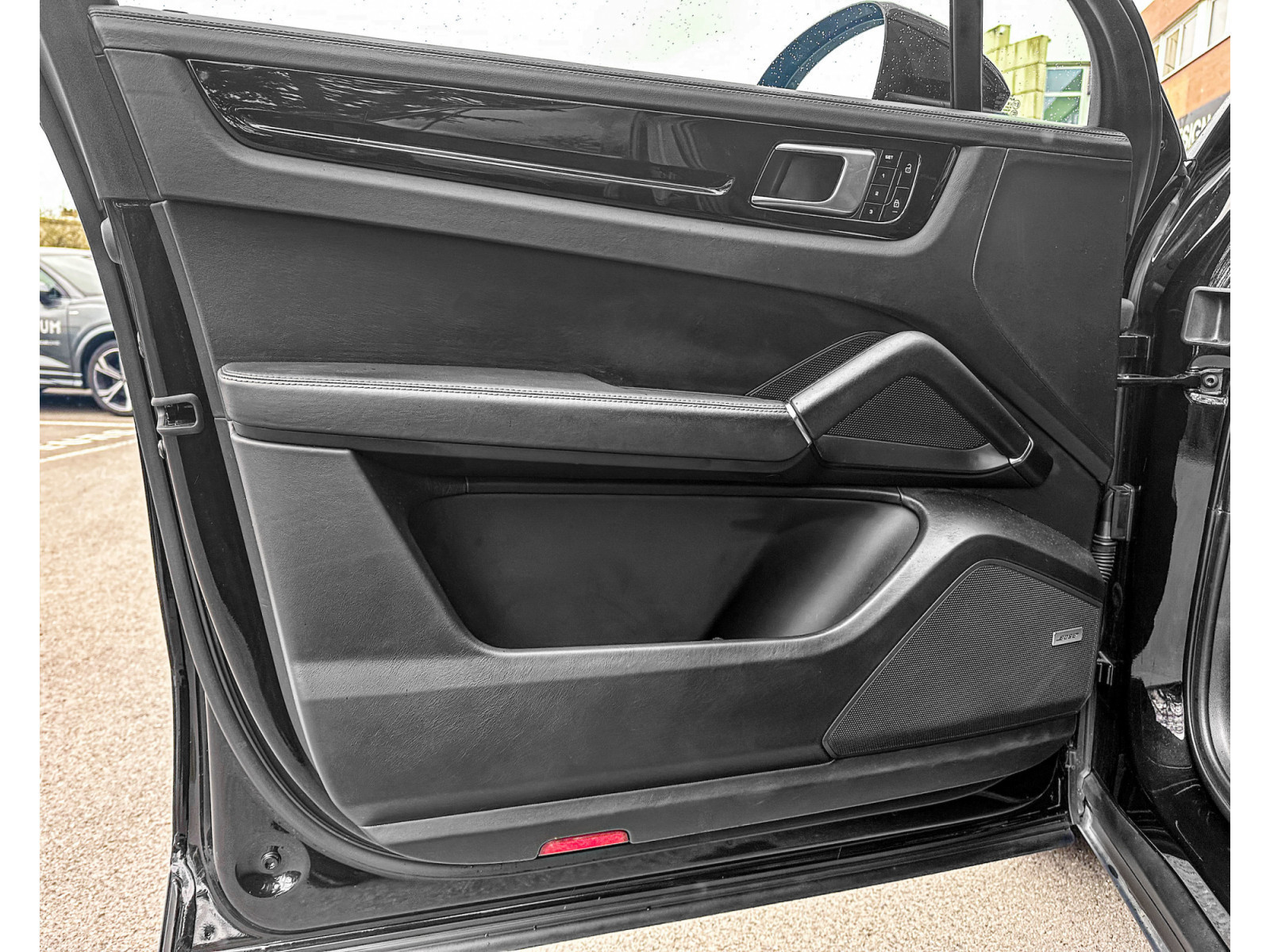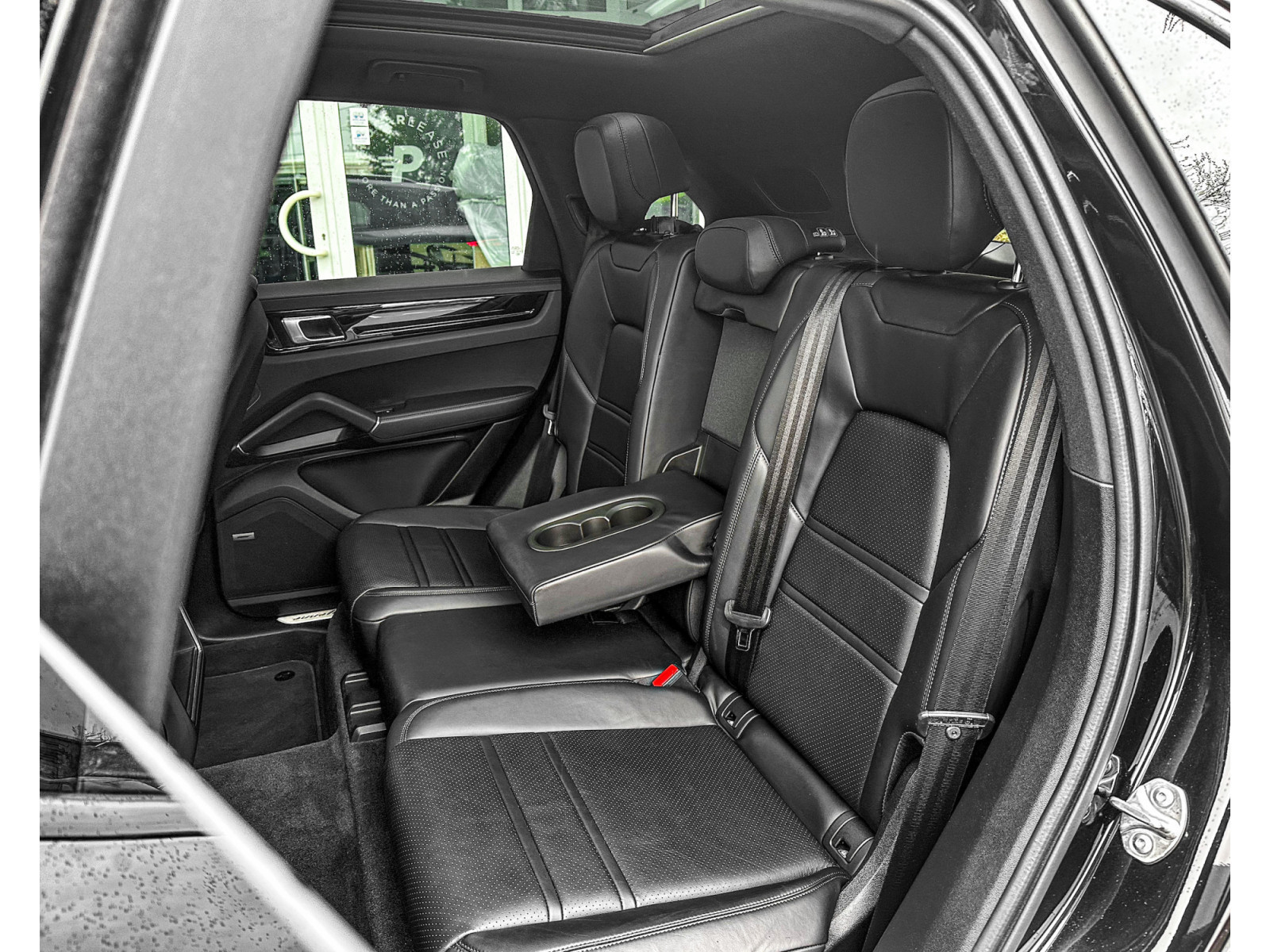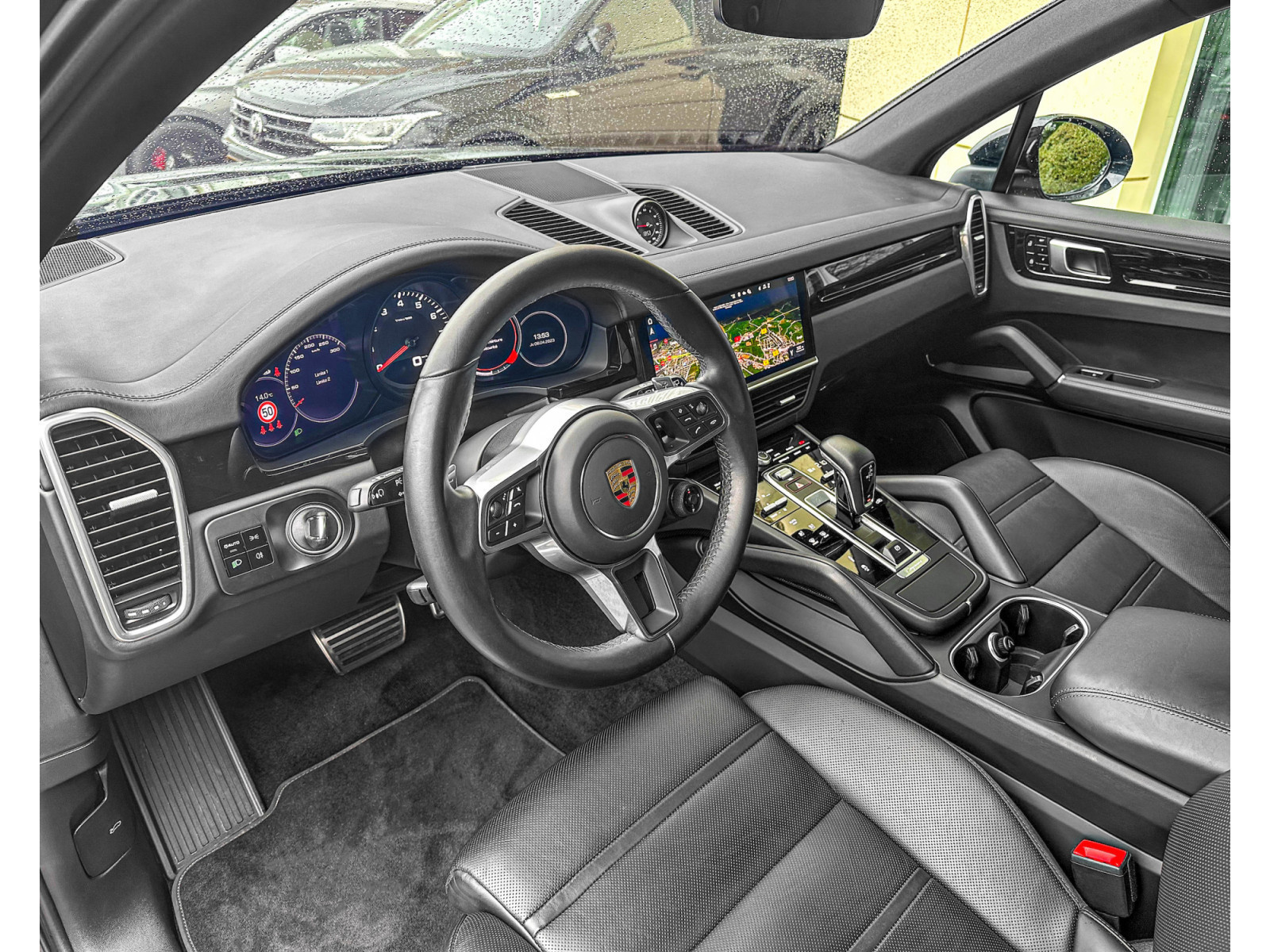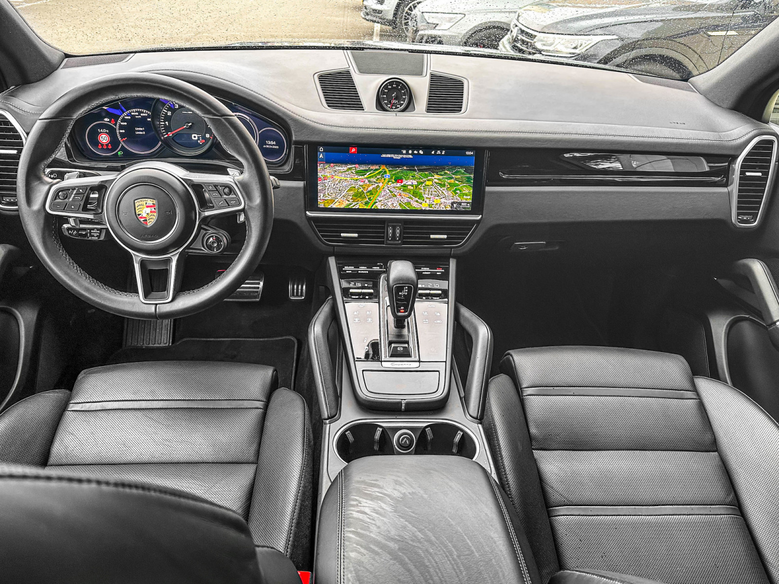 Rangement pour smartphone, éclairage d'ambiance, Apple CarPlay avec commande vocale, rétroviseur extérieur/intérieur avec atténuation automatique, rails de toit, pack extérieur, système d'aide à la conduite : assistant de stationnement avant et arrière avec caméra de recul et vue panoramique, système d'aide à la conduite : assistant de changement de voie , Tapis de sol, régulateur de vitesse (tempomat) avec contrôle de distance (étendu), Home-Link (ouvre-porte de garage), intérieur : cuir lisse, couleur cuir standard, ioniseur pour la purification de l'air, sièges confort à l'avant avec réglage du siège en 14 directions et pack mémoire, réservoir de carburant : 90 litres, Volant chauffant (AV supplémentaire au volant), Jantes LM avant/arrière : 9,5x21 / 11x21 (volant Cayenne Turbo Design, platine, couleur carrosserie, peint avec une finition satinée), Phares Matrix LED avec Porsche Dynamic Light System Plus (PDLS+), toit ouvrant panoramique électrique en deux parties à l'avant, réception radio numérique (DAB+), enjoliveurs de roues colorés avec écusson Porsche, pack fumeur, airbag latéral arrière, direction assistée Plus ( en fonction de la vitesse), ventilation des sièges avant, chauffage des sièges avant, système audio BOSE, pack sport chrono, sorties d'échappement sport en optique 4 tubes, noir, Vehicle Tracking System Plus (PVTS Plus), vitrage arrière assombri (vitrage privé)