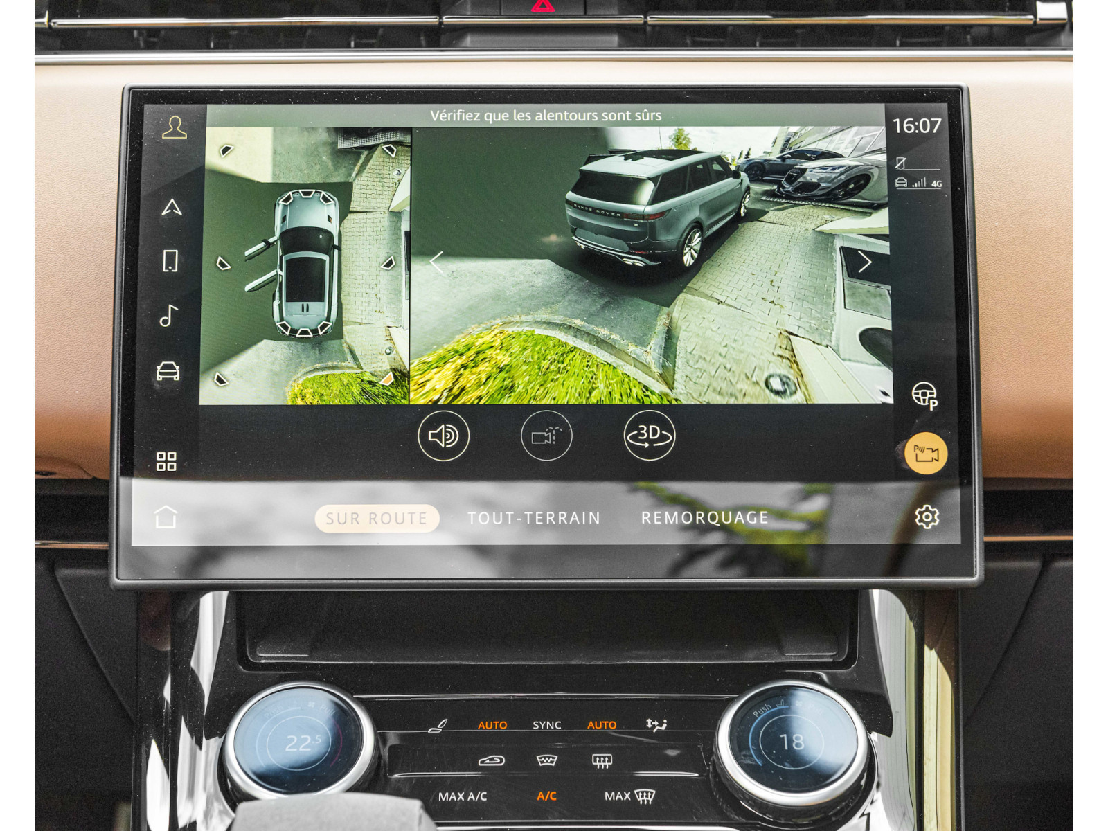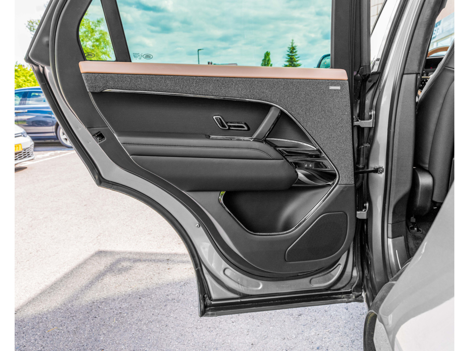 Adaptive cruise control (ACC) with stop & go function and steering assistant, perimetric alarm system, all-wheel steering, audio system: Meridian sound system (800 watts, 19 speakers, subwoofer), electrically adjustable, heated and foldable exterior mirrors with automatic dimming and ambient lighting, exterior mirrors with memory function, indicators with running light, Bluetooth interface, brake callipers painted black, roof in contrasting color, roof liner SV Bespoke Build premium velour in ebony, digital LED headlights with LED signature and image projectors, Dynamic Response System Pro (active chassis stabilization), parking aid front and rear, illuminated door sills with lettering, electric motor 160 kW (hybrid drive), electronic. Limited-slip differential (rear axle), driving assistance system: Adaptive chassis control (Adaptive Dynamics), driving assistance system: Attention assistant, extended (DCR), driving assistance system: Autonomous emergency braking assistant, driving assistance system: Rear impact avoidance including blind spot warning system, driving assistance system: Rear collision warning system (reversing assistant / cross traffic assistant), driving assistance system: Rear collision warning system, driving assistance system: Parking assistant, driving assistance system: Lane keeping assistant (Lane Departure Warning), driving assistance system: Depth measurement when driving through water (Wade Sensing), driving assistance system: Blind spot assistant with lane keeping assistant, driving assistance system: Traffic sign recognition with adaptive speed limiter system, luggage compartment partition (net), seat belt locks, illuminated, head-up display, tailgate / lid electric. operated (open + close), Hybrid 375 kW (engine 3.0 liter - 294 kW), InControl Remote Premium (online services / apps), infotainment system: Pivi Pro, interior: decorative inlays Natural Black, interior lighting Premium, interior mirror, digital (Smart View Mirror), proactive occupant protection system, instrument display TFT color display (13.7 inches), body: 5-door, 4-zone automatic climate control, charging cable with type 2 plug (mode 3), loading sill protection (aluminum), leather package, extended equipment, SV Bespoke Build, steering wheel (leather) with multifunction with bezel in Moonlight, steering wheel with shift paddles / buttons (matt chrome), steering column (steering wheel) electr. adjustable, alloy wheels, air quality sensor, mobile phone interface with wireless charging function, petrol particle filter (GPF), panoramic electric sunroof, digital radio reception (DAB+), wheelbase 2997 mm, tire pressure monitoring system, leather backs of front seats, low emissions according to Euro 6d emissions standard, hardened side windows, service system: Amazon Alexa, seat cover / upholstery: perforated semi-aniline leather (ebony), front seats electrically adjustable (22-way, with memory and massage function), air-conditioned and heated, wireless smartphone interface (Apple CarPlay & Android Auto), automatic soft-close for doors, left sun visor with mirror, two-part (illuminated), sports pedals, start / stop system, surround camera system, premium carpet floor mats, Terrain Response System 2, touchscreen color display (13.1 inches), plain paint, two-stage transfer case (reduction gear)