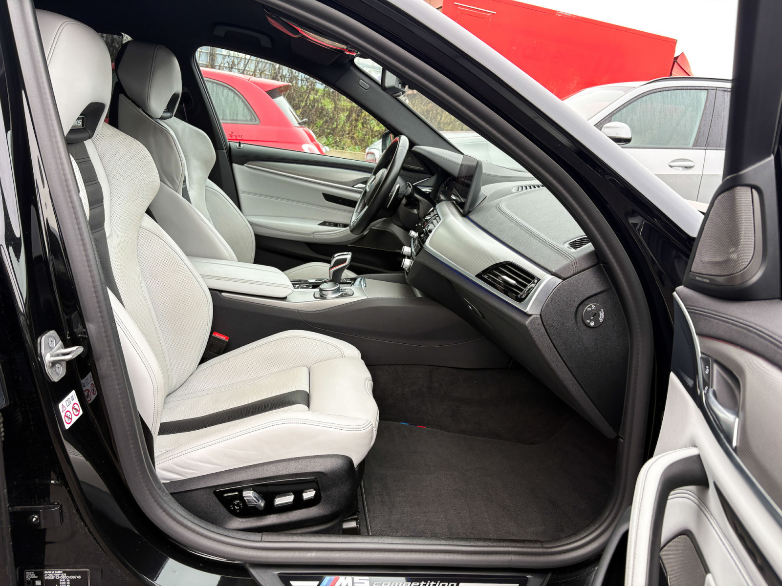 Troisième feu stop à LED, Suspension adaptative M, Pack Aérodynamique M, Désactivation de l'airbag passager, Airbags conducteur et passager, Appuie-tête actifs, Éclairage d'ambiance, Pack Connected Professional, Finition extérieure : Shadow Line brillant (extension), Rétroviseurs extérieurs à réglage électrique, Rétroviseurs extérieurs réglables et chauffants avec fonction d'éclairage latéral, Pack rétroviseurs extérieurs étendus, Clignotants à LED, BMW Live Cockpit Professional, Freins M Sport (étriers peints), Assistance au freinage d'urgence, Récupération d'énergie au freinage, Finition Competition, Tuner DAB (réception radio numérique) Ciel de toit anthracite (BMW Individual), écrous antivol, système de chargement traversant (accoudoir central arrière), feux de freinage dynamiques, contrôle dynamique de traction (DTC), seuils de porte avec inscription M-Technic, trousse de premiers secours, système d'alerte de collision avec freinage d'urgence, système de détection de somnolence, sélecteur de mode de conduite, assistant feux de route, système d'alerte piétons avec freinage d'urgence, suspension abaissée, vitres électriques avant et arrière, console centrale orientée vers l'arrière, système mains libres Bluetooth avec interface USB/audio, système de protection des piétons passif, tapis de sol en velours, boîte de vitesses automatique Steptronic et Drivelogic (8 rapports), porte-gobelets avant et arrière, affichage tête haute, hayon à ouverture automatique, feux arrière à LED, aileron arrière (M-Technic), inserts décoratifs en aluminium carbone avec baguette décorative, rétroviseur intérieur électrochrome, combiné d'instruments multifonctions, tableau de bord Sensatec, fixations Isofix pour sièges enfant à l'arrière, carrosserie 4 portes, climatisation automatique 4 zones avec recyclage automatique de l'air, airbag genoux conducteur, airbags rideaux arrière, airbags rideaux avant Système de soutien lombaire pour les sièges avant (gauche et droit), colonne de direction à réglage électrique et airbag conducteur, colonne de direction à réglage mécanique, réglage automatique de la portée des phares, peinture métallisée, accoudoir central arrière, restylage, moteur V8 32 soupapes de 4,4 litres et 460 kW, système de navigation ConnectedDrive, feux antibrouillard arrière, pack non-fumeur, filtre à particules pour moteurs essence (FAP), pack d'assistance au stationnement, frein de stationnement électrique, système de personnalisation (Profil Personnel), système de surveillance de la pression des pneus, indicateur de crevaison, banquette arrière rabattable 40/20/40, faibles émissions selon la norme Euro 6d, gicleurs de lave-glace chauffants, airbags latéraux avant, services ConnectedDrive, système d'appel d'urgence, système d'appel d'urgence intelligent avec TeleServices, direction assistée Servotronic M-Technic, ceintures de sécurité M, configuration 5 places, sellerie cuir Merino (gamme étendue), sièges avant à réglage électrique (avec mémoire), sièges avant partiellement à réglage électrique. Sièges avant réglables et chauffants, système audio Harman Kardon, système d'échappement M Sport, bouton de démarrage/arrêt, système de démarrage/arrêt (fonction), triangle de signalisation, vitrage combiné de protection thermique et solaire (vitres arrière teintées).
