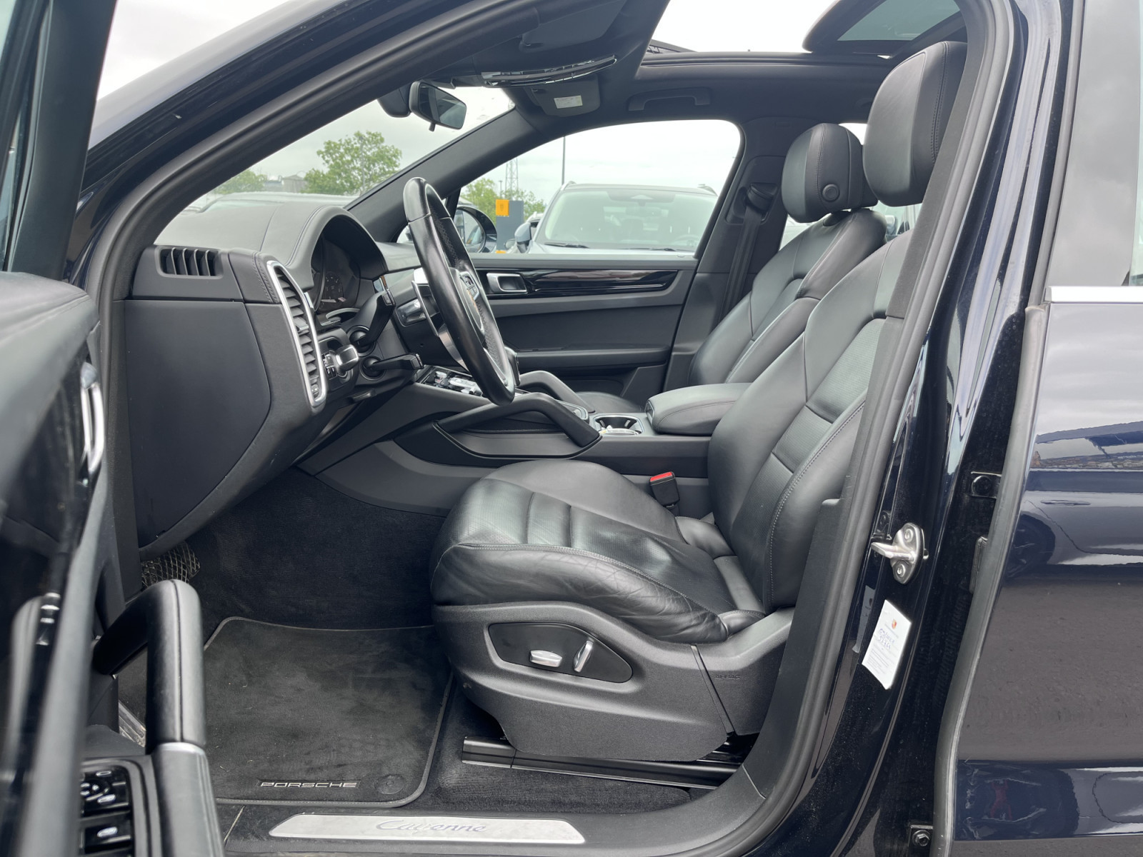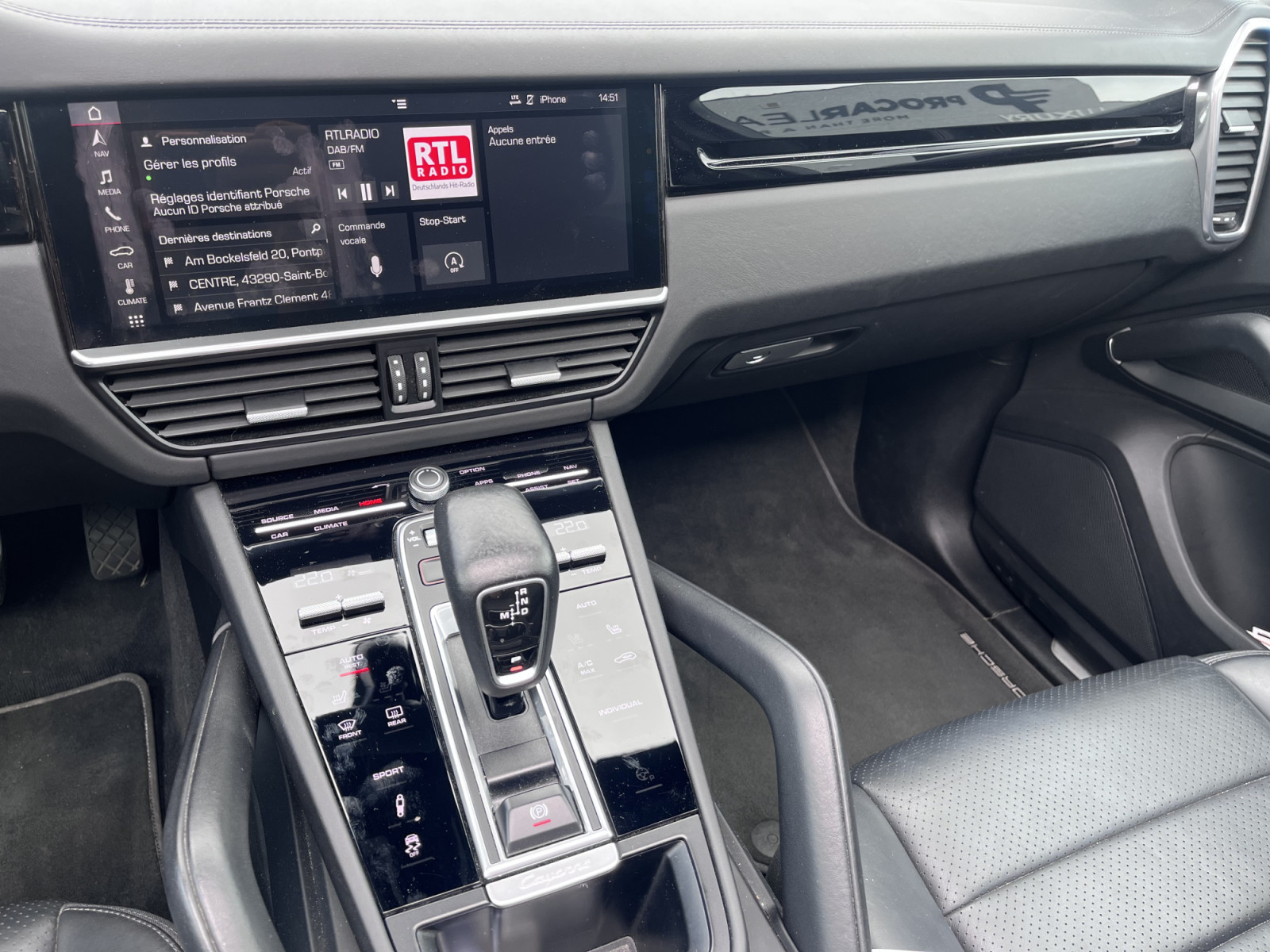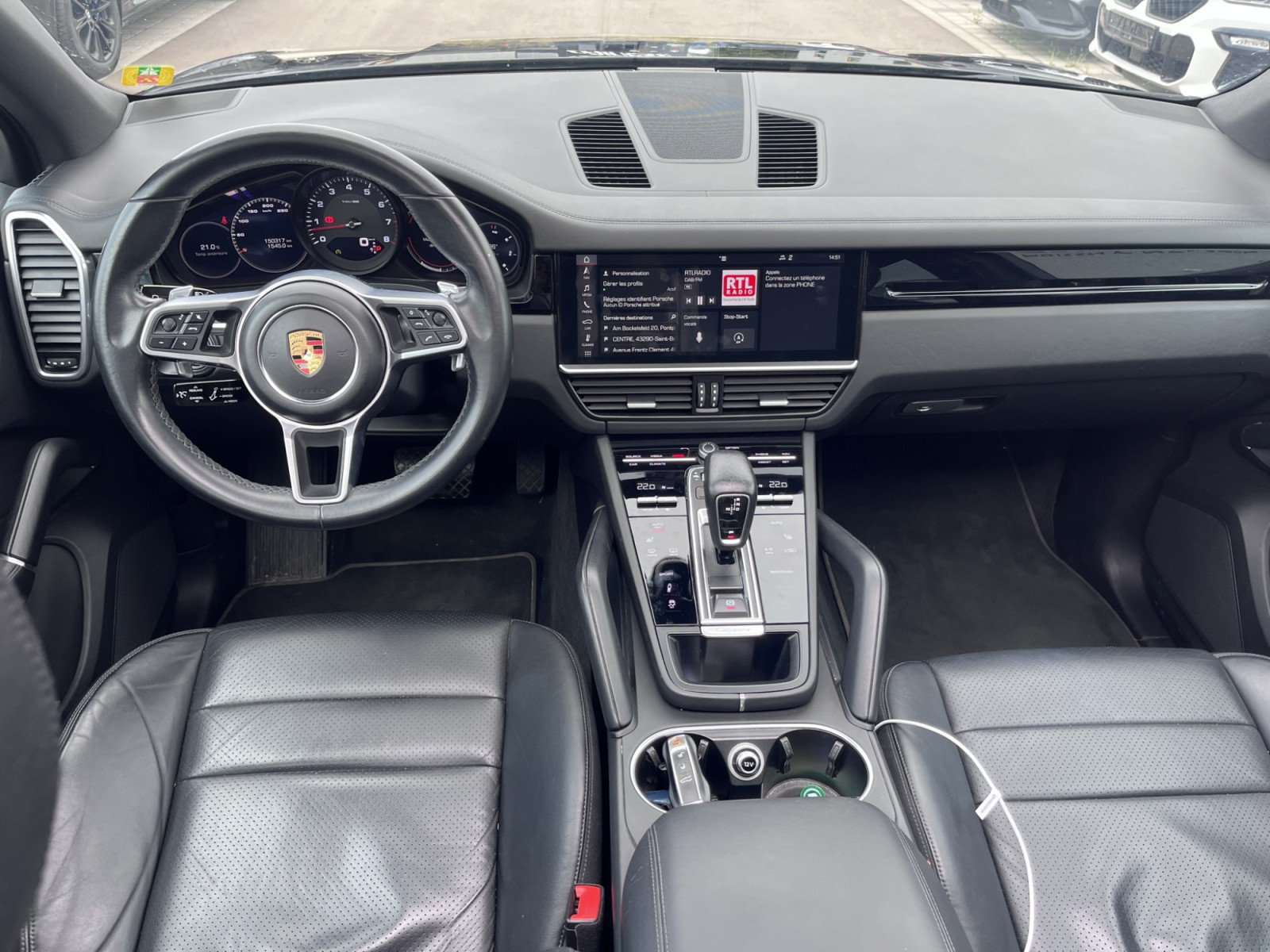 Apple CarPlay avec commande vocale, barres de toit avec système de transport sur le toit, aspect aluminium, système d'aide à la conduite : aide au stationnement avant et arrière avec caméra de recul, véhicule sans nom de modèle, réservoir de carburant : 90 litres, jantes LM avant/arrière. : 8, 5x19 / 9,5x19 (roue Cayenne S), toit ouvrant panoramique électrique en deux parties à l'avant, kit de réparation pneus, sièges avant chauffants
